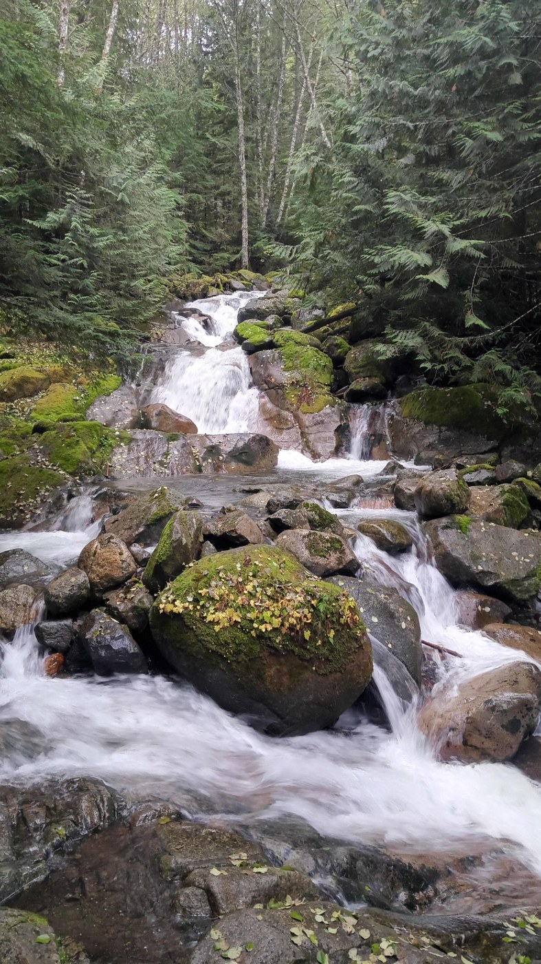 It is the change of seasons - there is now more water in the creek and there is snow on the upper half of the Annette Lake Trail: