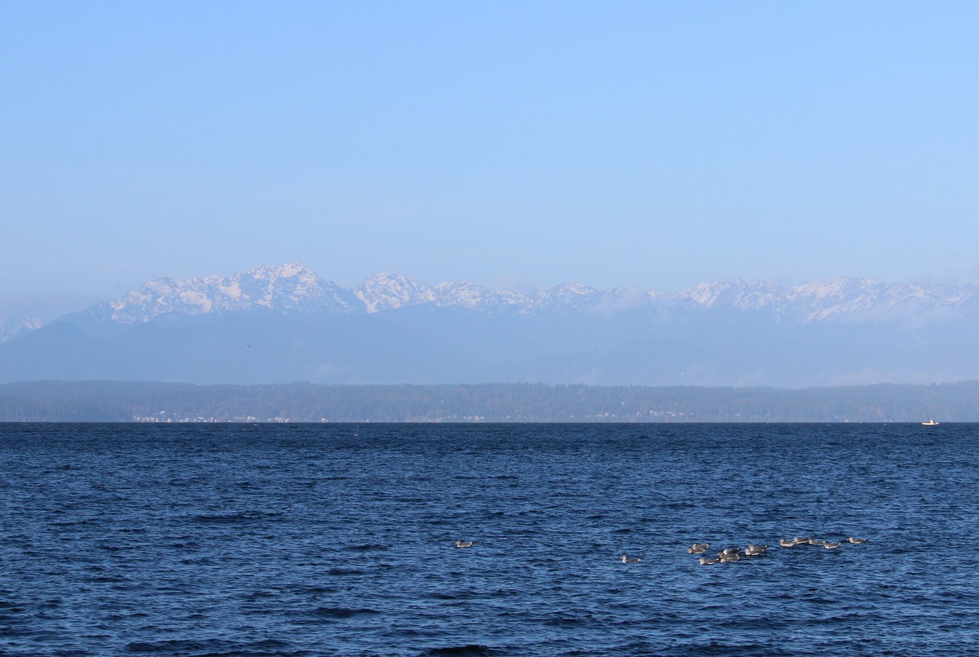 The big draw this time of year is the chum salmon run that spawn in Piper’s creek and its tributaries. As of this morning there were a few fish in the lower pond area east of the railroad culvert and a few more making their way up the beach plus some jumping out in the sound along the beach but volumes are not quite here yet. Additionally I did not see any live nor carcasses above the beaver dam area at all. The info I’ve seen online showed a pretty big run again this year and hit pretty early, so I’m thinking we are probably just starting to ramp up. One gentleman I talked to indicated he’d seen the first just a couple days ago. Besides the salmon there are heron, bald eagle, a bunch of gulls, one feisty little king fisher harassing a heron, very nice fall color in the big leaf maples plus some excellent views out over the water to the newly snowy Olympics. A super nice little walk if you are in the area but maybe wait a few days if you are specifically looking for the salmon run.