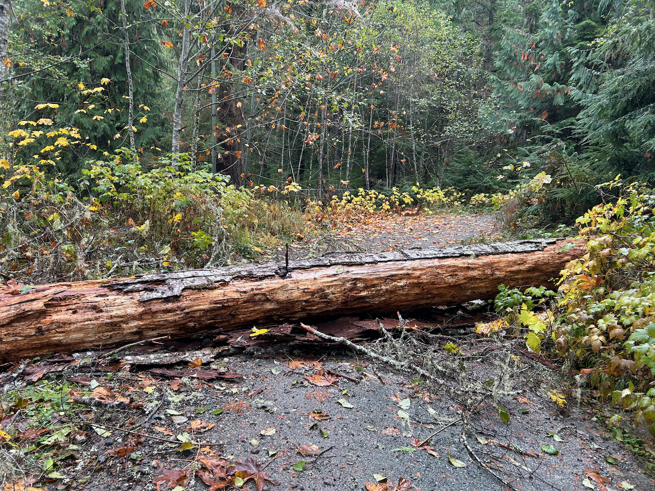 Downed tree is clear from the FS road all the way to the trailhead as of afternoon of 11/8/2025.