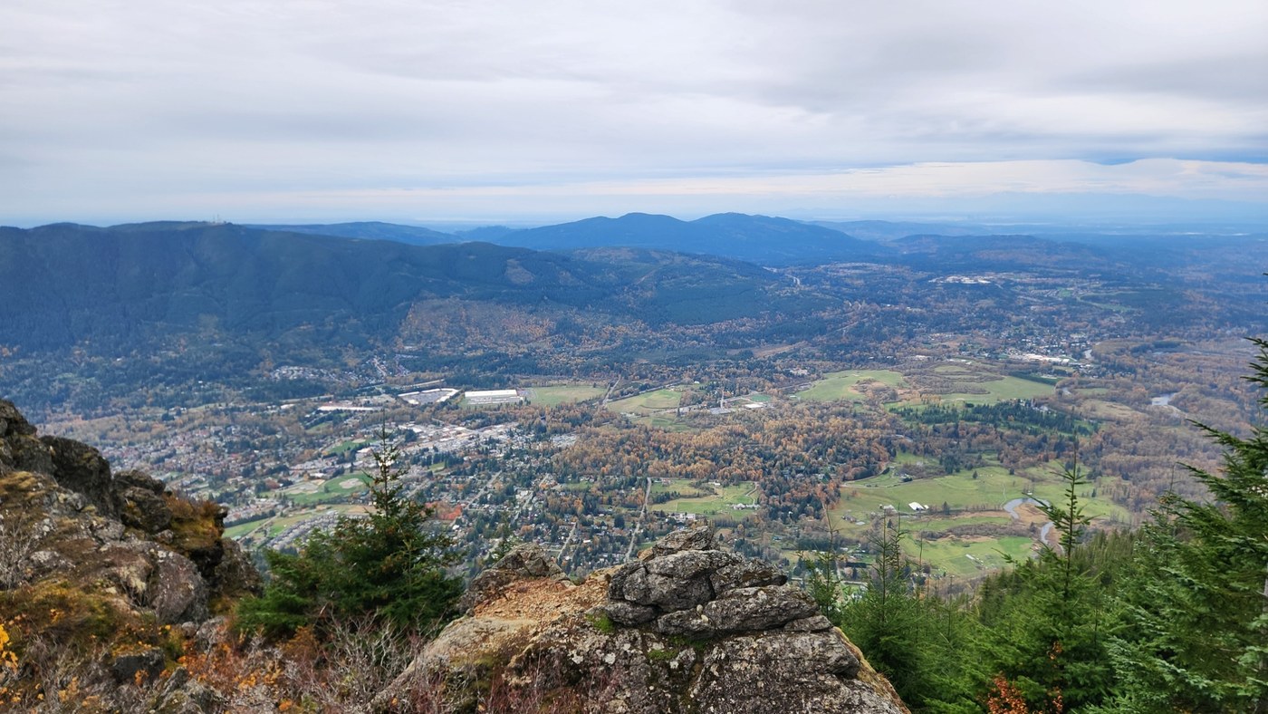 Nice Halloween hike started with a headlamp a little before 7 and I kept it on through Boulder Loop. Lots of evergreens on the mountain; but there were some pretty fall colors lower on the mountain. Only a few patches of snow off the trail at the top, near the Snoqualmie Valley Overlook. The skies were clear enough to have good views of the fall colors in the valley and some views of Rainier. It was a bit windy at the top which had me add another layer for the descent. Mt Si is such a great hike and workout in the morning.