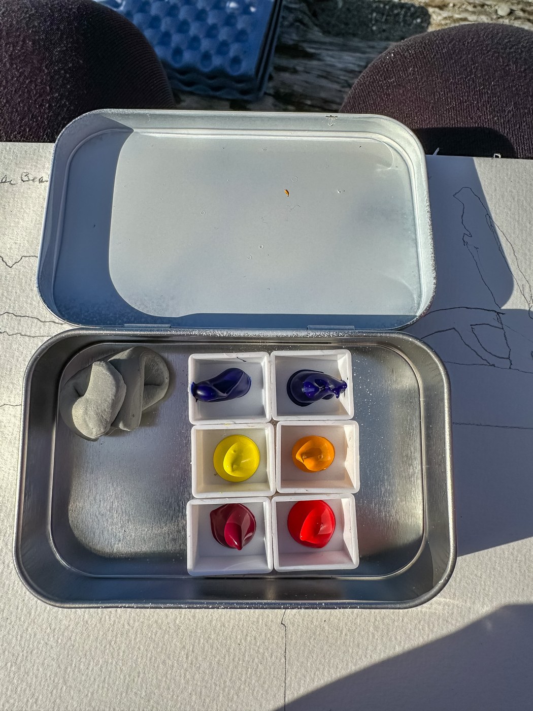 Huge Kudos to Brandon for coordinating, and to our artist teacher, Shelby, who supplied us with art boards, cups, paint brushes, pencils and erasers, and adorable little WTA tins with our very own paints in magnetized holders so they wouldn't slide around.