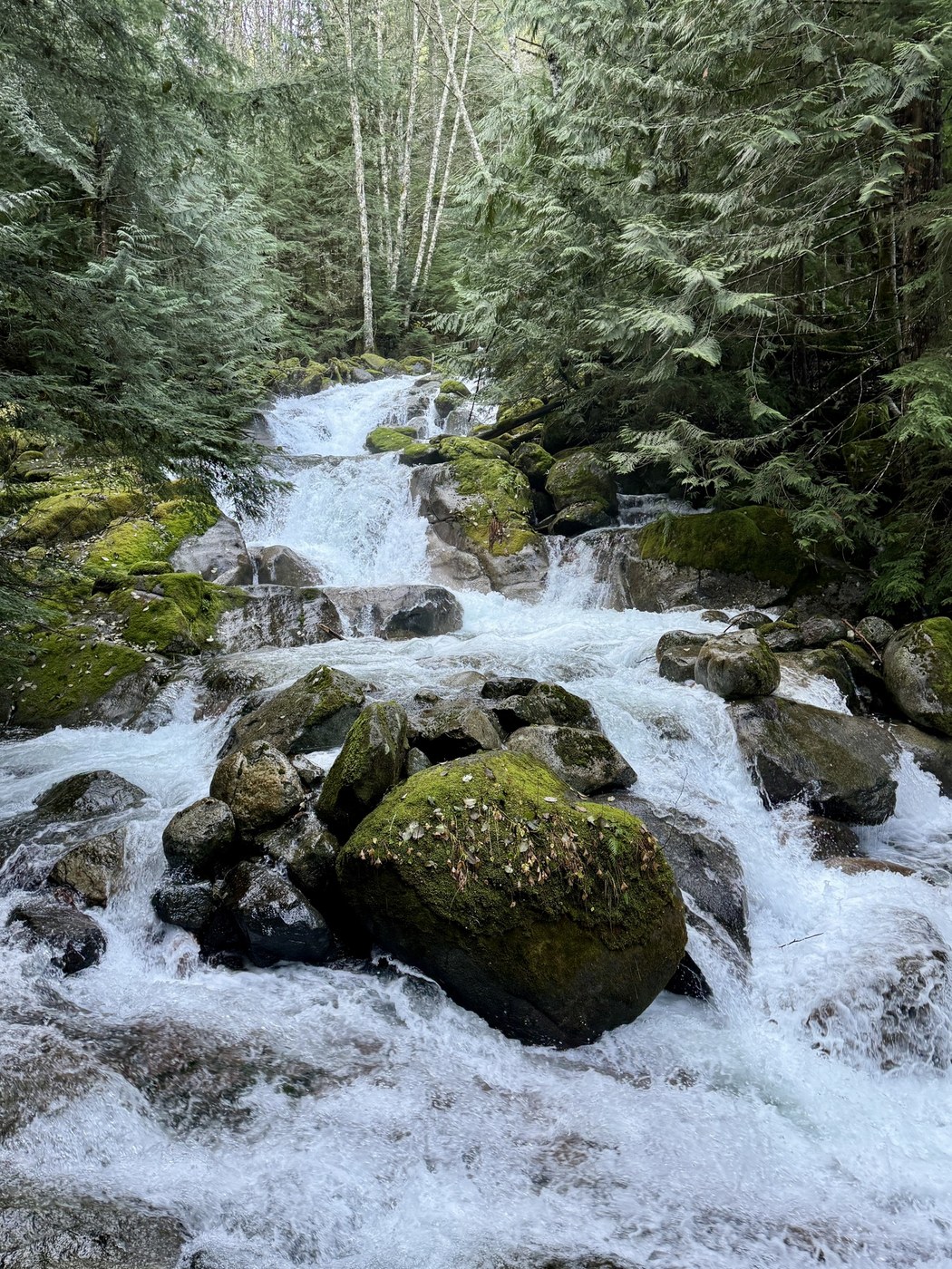 It was a beautiful day, and Annette Lake was a great choice for where to spend it. The trail is largely shaded, and while steep in sections, it was in relatively good shape. There are a couple of minor blowdowns and some water runoff on the trail, along with some minor snow on the trail as you approach the top (no traction devices needed), but welcome to early winter in the Cascades.