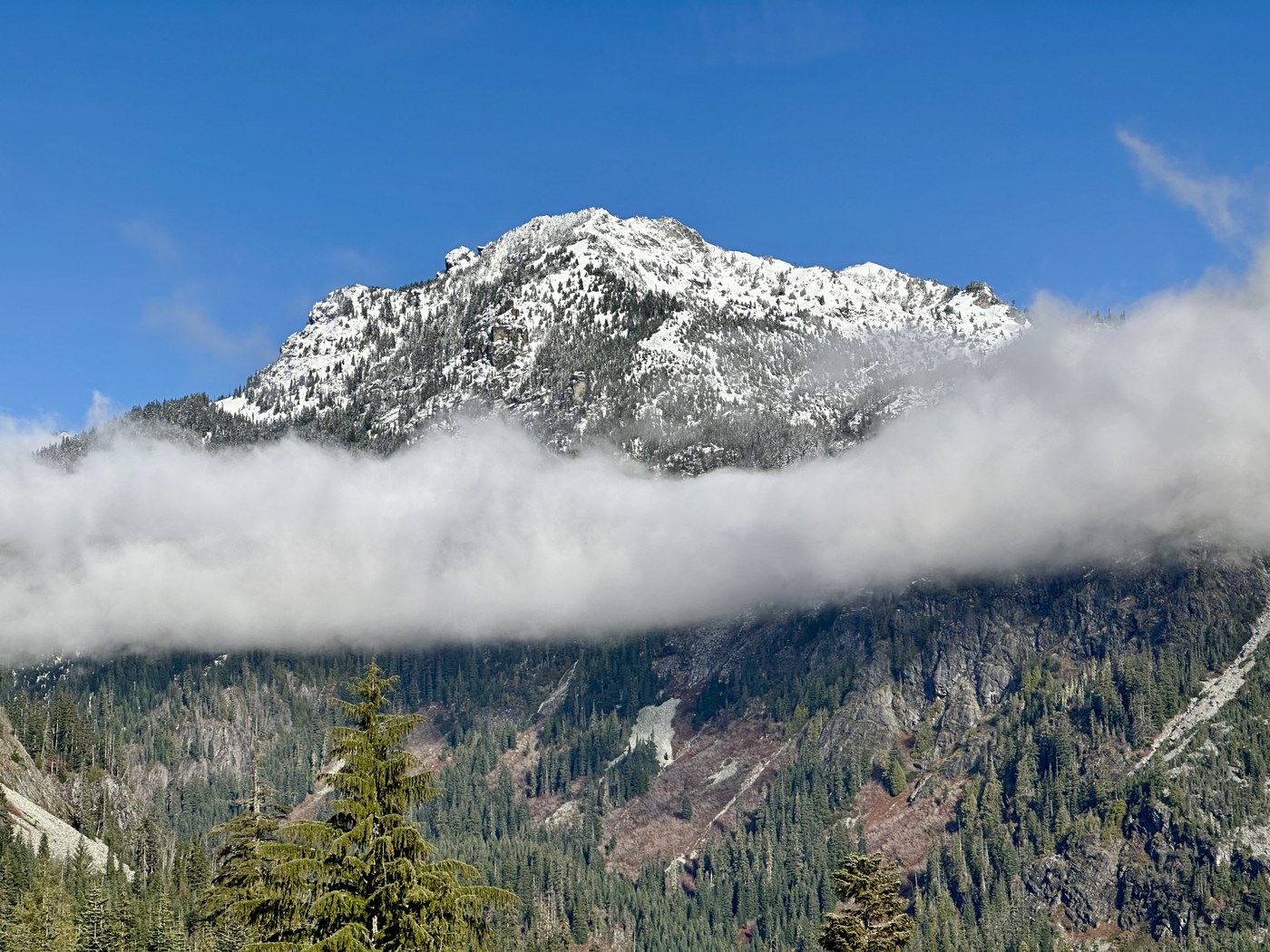 The trail is an easy leg stretcher with great views of the peaks surrounding Snoqualmie Pass, which are now lined with snow about a quarter down from their tops. A major obstacle is abundance of water on the trail; many times it is hiking in a stream. There is one tricky stream crossing requiring rock hopping; fording the stream would be tough due to depth. For the same reason, I was never able to approach Lodge Lake: the offshoot trail leading to it became completely submerged soon after the junction with PCT.