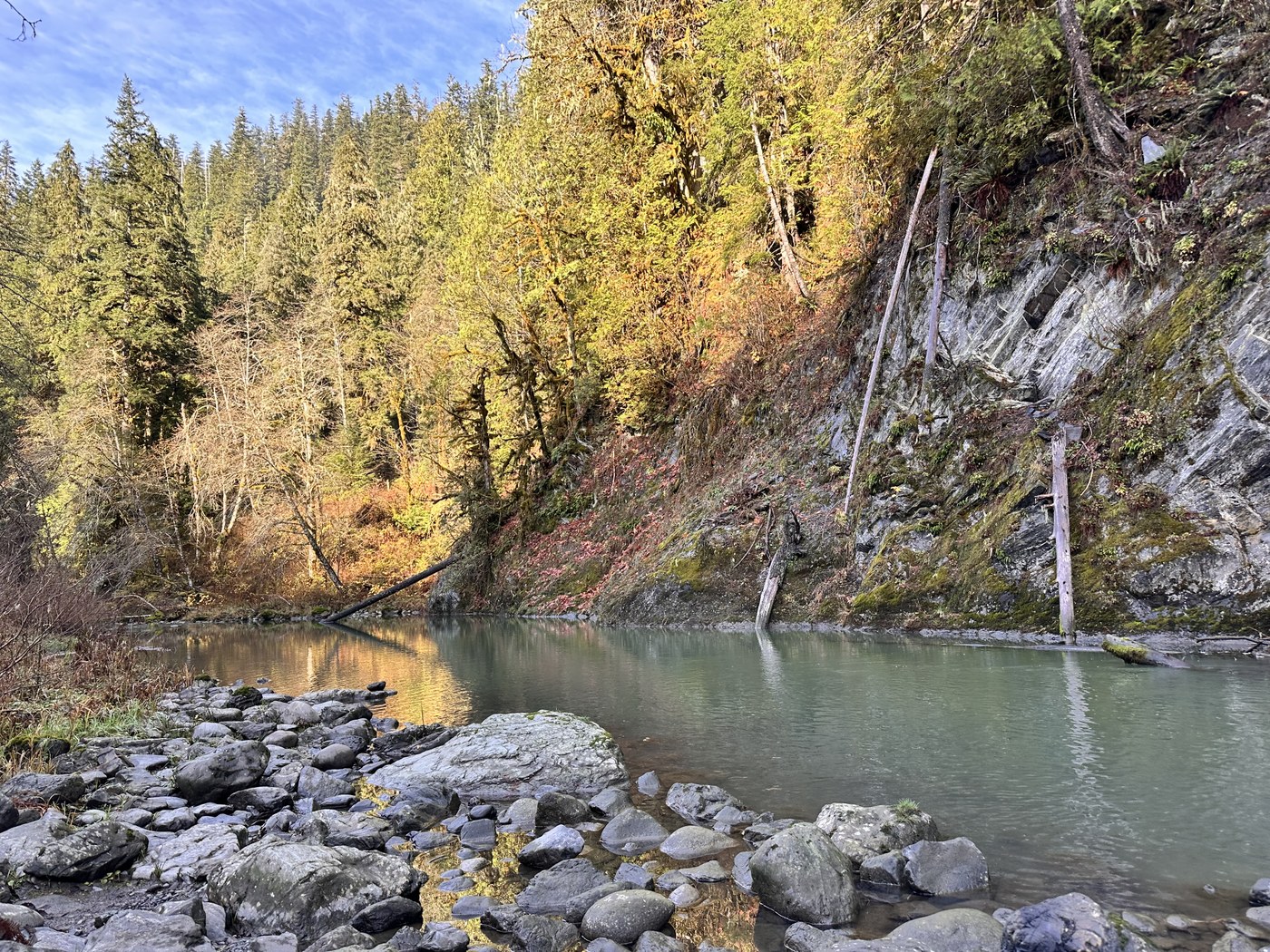 We arrived at the TH around 8:30. Even though it was a holiday we only saw 4 other hikers when we were on our our way back. First mile is an easy trail on an old logging road to the start of the trail descending to the Sultan River. its a moderate grade down on the switchbacks down to the river. Lots of mushrooms out today.