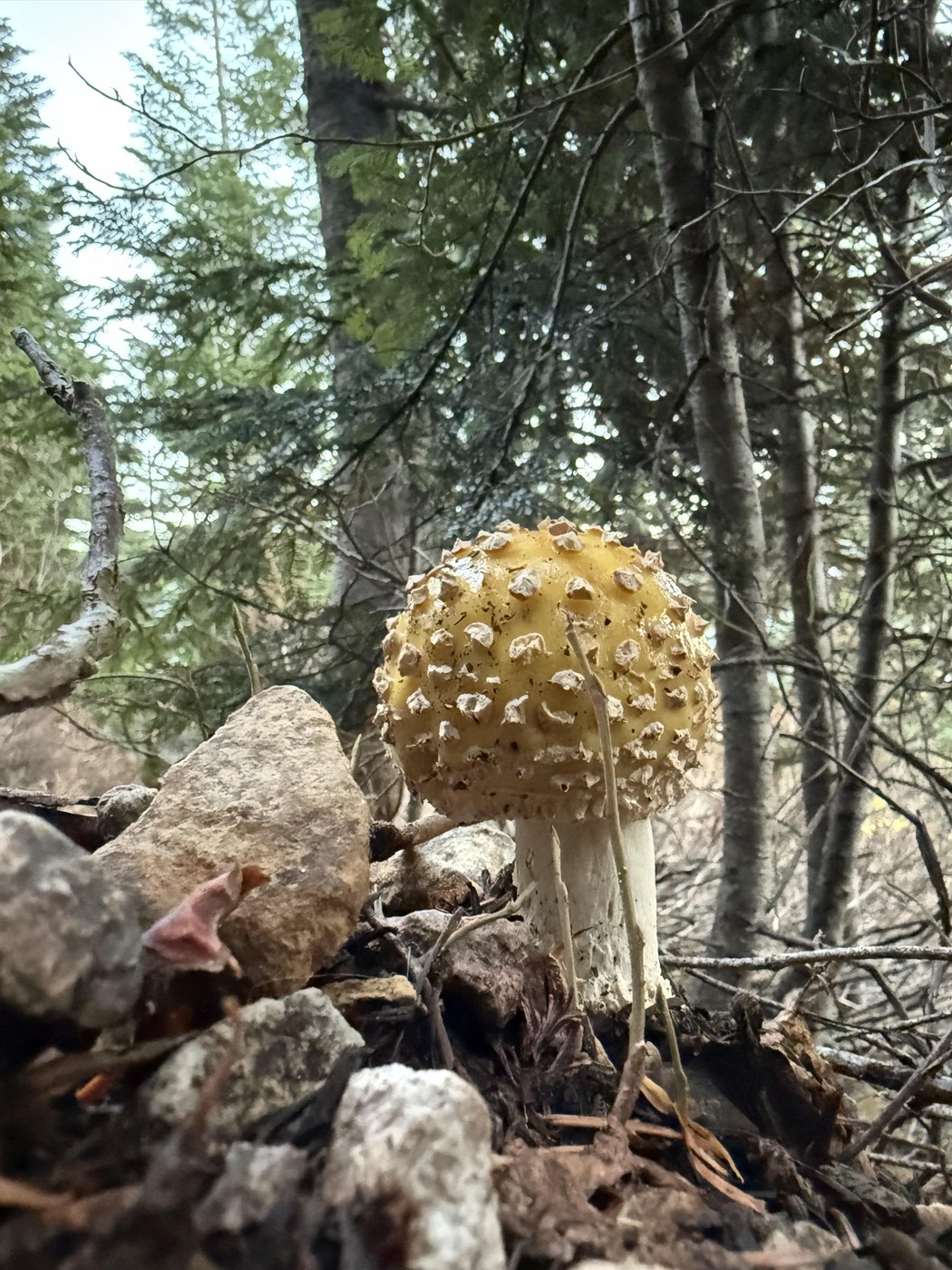 Since it’s shoulder season, I thought I’d provide an update on the Mount Catherine trail. The trail is in great shape with only a couple down trees, both of which are easily passable. The intermittent snow that’s actually on the trail starts around 3/4 of a mile in according to my watch and appears in short patches most of the rest of the way to the top. The last quarter of a mile or so is all packed down snow that’s pretty icy, some of which goes along the ridge. I used poles on the way up and both spikes and poles on the way down until I had gotten through the really icy portion. It’s passable without either, and there were a couple people doing it without any traction but it was much more slow going for them than it was for me, so I recommend poles at minimum, and both spikes and poles if you prefer more peace of mind. Incredible views at the top, some mushrooms along the trail, very little fall foliage left—just some bushes at lower elevation. The trail is still easy to follow and had lots of packed down snow up high, but if we get any more snow, be sure to have navigation so you can find it when the snow isn’t packed down and making it obvious. The road to the trailhead is pretty rough, but if you take it slow you’ll do fine. No snow on the road yet.