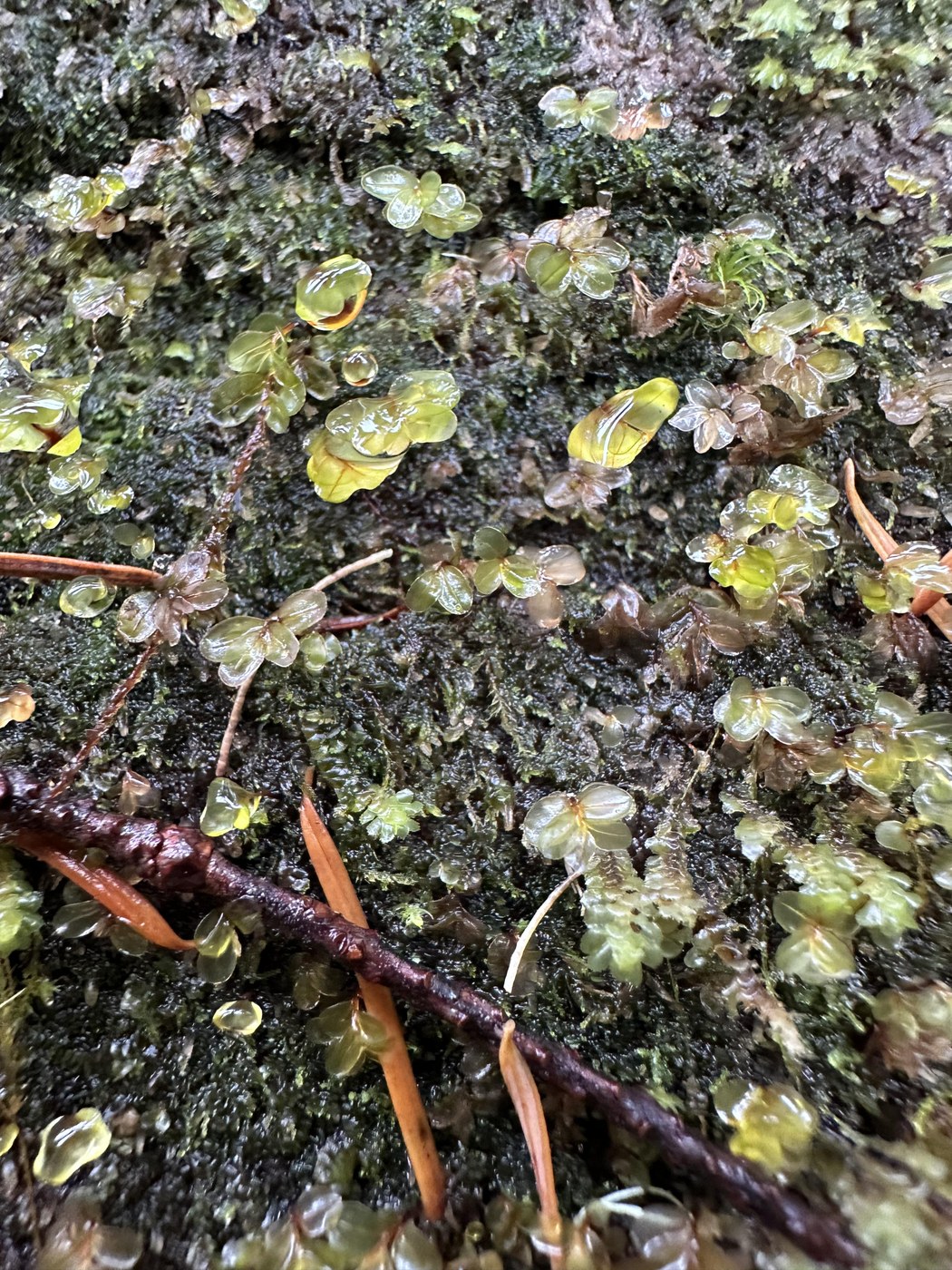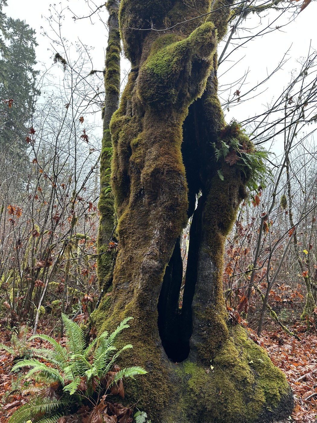 We hiked from the Le Bar trailhead to just past the first camping area, then doubled back to that area for lunch under a large cedar just as the rain was picking up momentum.