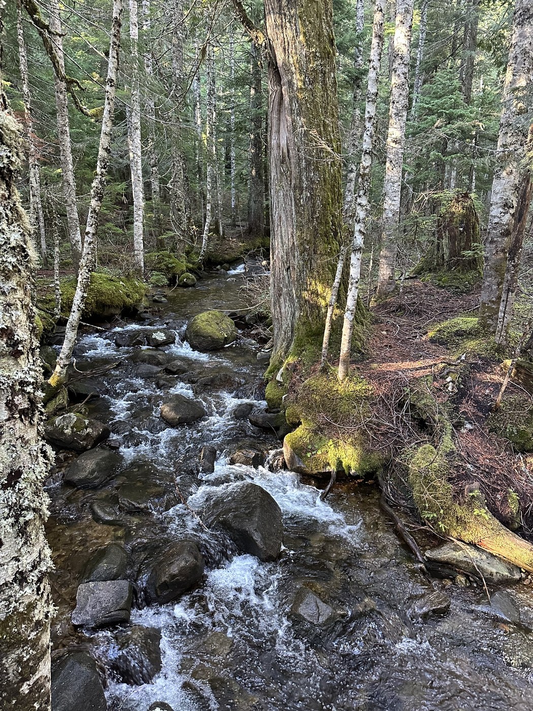 Arrived around 11:30am, only five cars in the lot. The dirt road section was in good condition, a few spots where it narrows due to debris buildup on the sides, including around a few blind turns, so just proceed slowly on those. The toilet at the trailhead has a closed for the season sign on it. Trail was in good shape, no snow, a few muddy spots here and there, but no big deal. A little more mud at the end of the trail near Olallie, but nothing that difficult to navigate. Great hike with scenic forests, mountain streams, and a couple lakes.