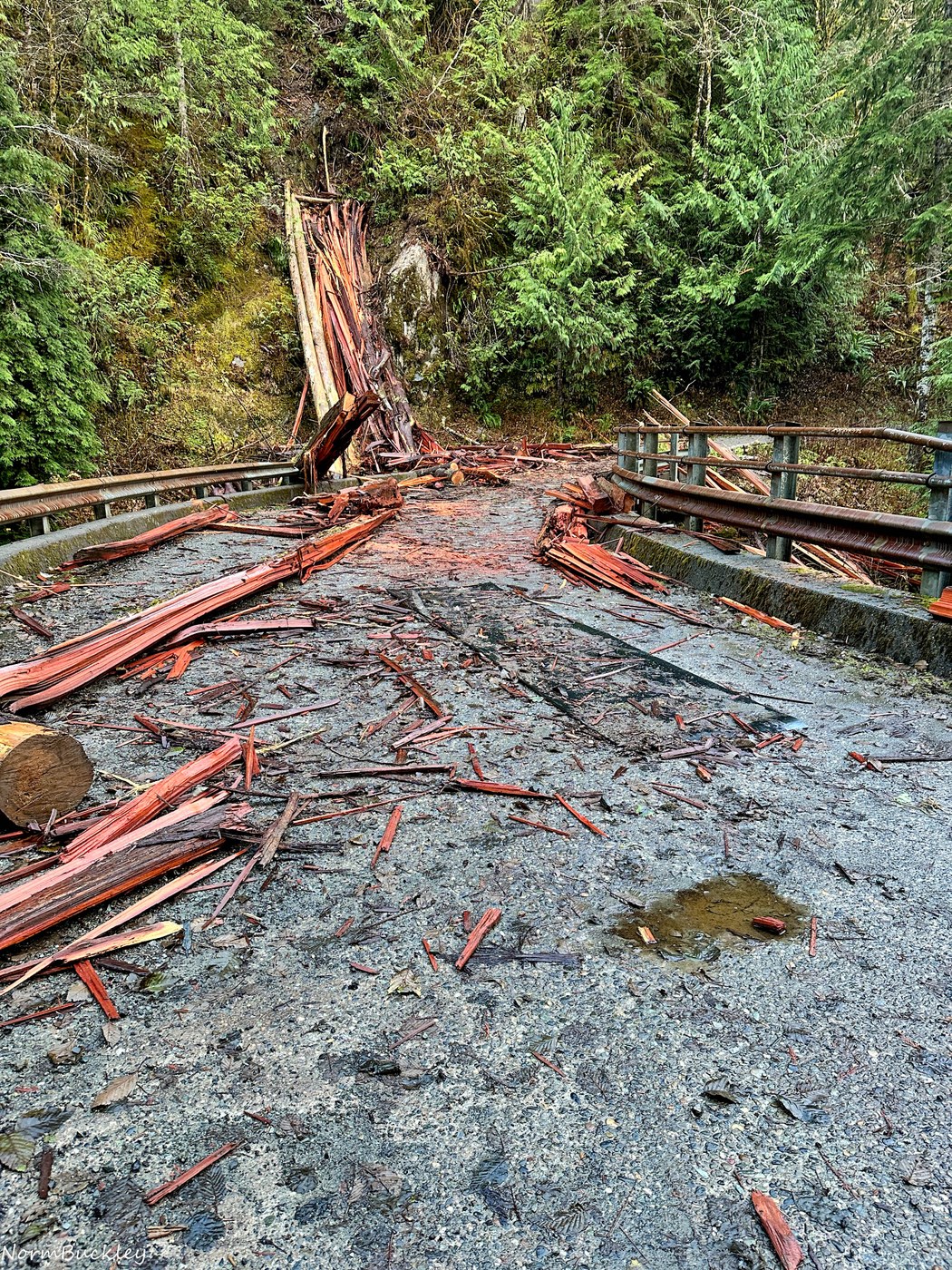 We had originally hoped to reach Bald Mountain, but instead settled on the open, sunny basin of Cutthroat Lakes. On the drive to the trailhead, we stopped at the bridge over Mallardy Creek, where a large cedar had fallen earlier in the season. The main trunk had already been cleared, but the bridge was still littered with debris. We took a few minutes to tidy it up further, leaving the crossing more passable for vehicles.