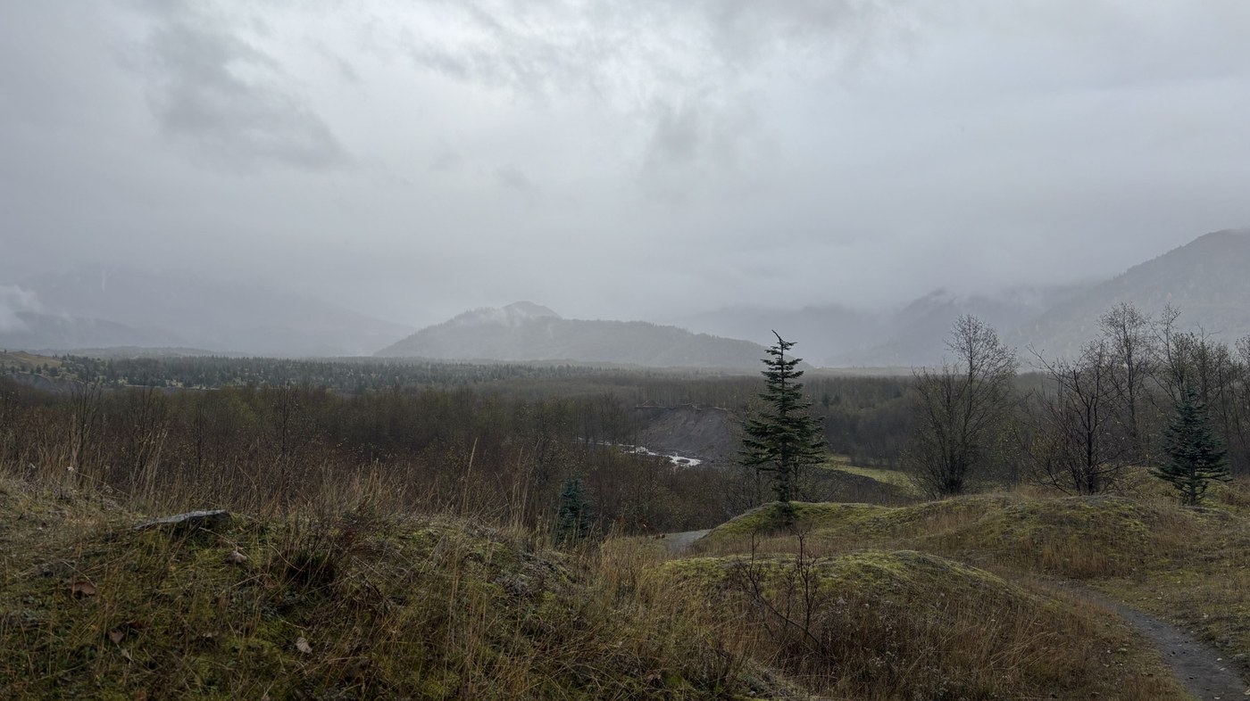 Nicely maintained trail as always, except for the one blowdown across a small stream that’s easy to duck under. Weather was misty and rainy off and on but that doesn’t deter me and didn’t deter the other half dozen hikers on trail here in the off season. Views are still good even though the mountain was hiding today.