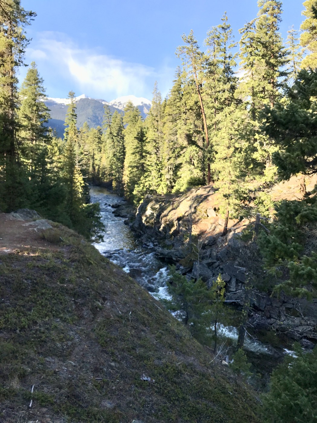 We took the loop heading downstream first, the Western larches have dropped their needles covering the trail in a lovely yellow amber glow. Temps were chilly and the wind made it more so. We were wearing full on winter gear and were happy to have it all with us. After we crossed the bridge with a furious Icicle creek raging away beneath us making our way upstream the wind eventually tapered and the sun came out. Still not warm but not unpleasant and really how nice it is to be hiking on a dry day at the end of always rainy November. The trail is damp but there are no mud or other issues. No wildlife except the usual Doug squirrels, who always have plenty to say. At the top end of the hike you get good views up into the higher peaks and there's plenty of places to admire the crashing cascades. Heading back down stream everything was mellow just a few other hikers out. Done in time to head back to town for lunch.