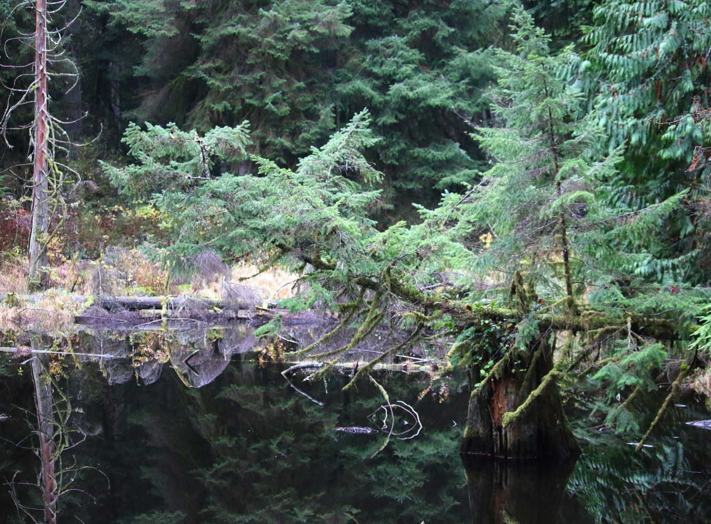 Quick walk around the Redmond Watershed trails in the drippy mist this morning. Parking at either the north or southern main lot are free and relatively plentiful, full restrooms only at the south lot. Note - no pets allowed except horses. The route was a messy clockwise loop from the north lot with side trips to frog pond, the trout interpretive loop and the old dam site and pond. The trails were in really nice shape, the park folks had even raked all the leaves off the paved wheel chair/power chair/stroller accessible frog pond loop, super nice.