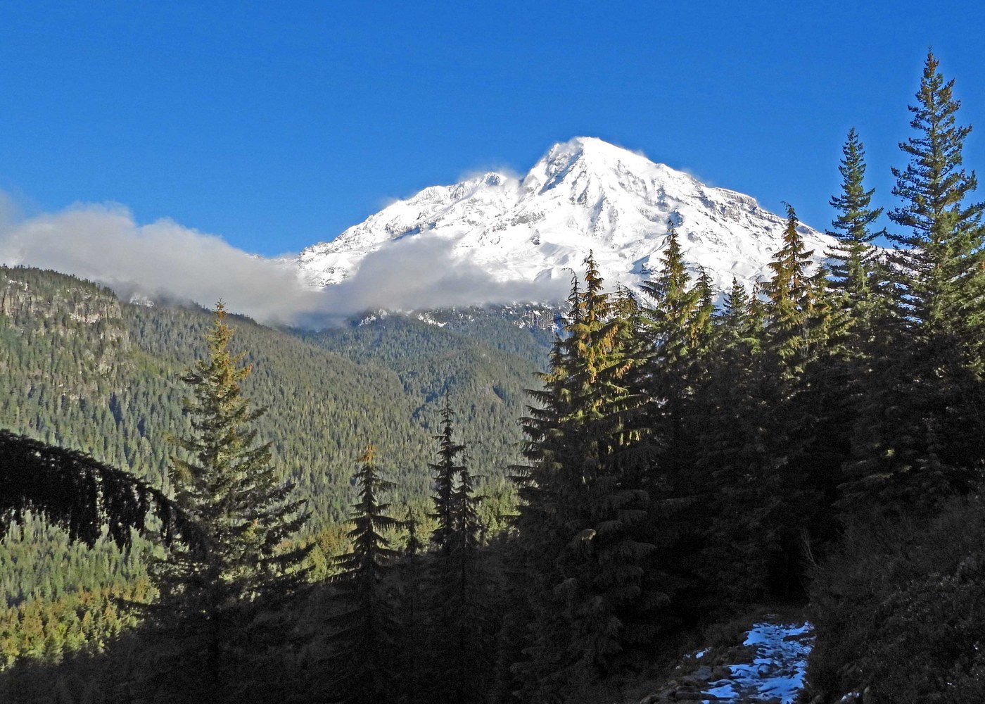 They were saying that the gate to Paradise would not open till 11:00 so, I hiked Rampart Ridge to the mountain view while waiting for it to open. On my way out of Longmire there was a Pine Squirrel eating a cone. There was one tree over the trail. It was easy to get around. The Rampart Ridge Trail was snow free till the place where the mountain can be seen was reached. Returned the way I came. On the way down There was a buck and a couple does in the trees. Only saw 5 other people on this trail. It is a good work out and nice walk in the woods.