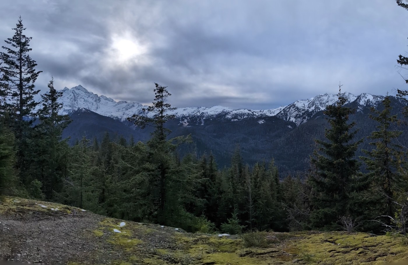 Going off memory (uh-oh), I was sure I'd read the turnoff was at the Mt. Baker Wilderness sign. It actually looked like a faint trail was present, but it quickly petered out. Undaunted, we soldiered on until it became obvious, we were off course even though we were using a map on my friends Apple watch. Luckily, I discovered I had cell service and called our friend kidzwonthike and he texted his track. Realizing we were just a few hundred feet below the peak we simply climbed the path of least resistance and found the old site. Great view!