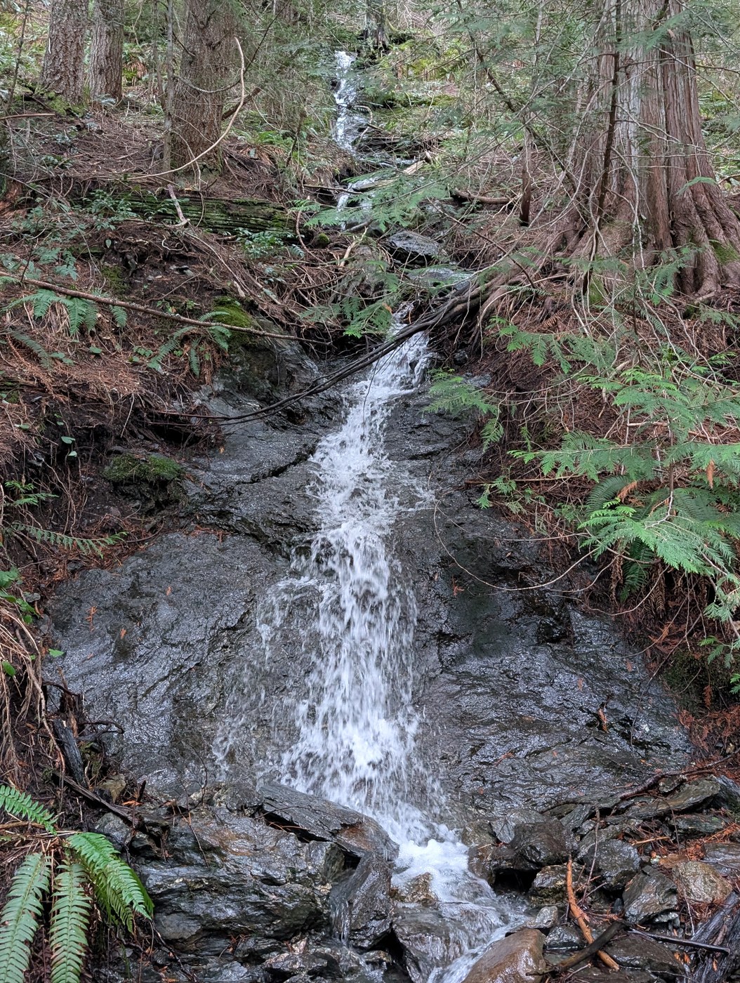 This was where we encountered the first snow and it was only maybe an inch or two, but we couldn't discern the trail for our return, so we bushwhacked our way until we connected to it below the snowline and followed it back to the main trail. There were a few step over trees and easily crossed creeks along the way. Though it was 32 degrees we never really felt cold. 5 miles, 1600 ft. gain.