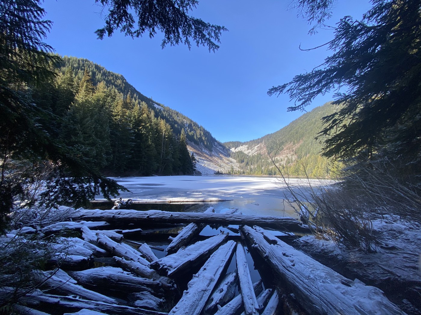 This was a great hike for late November! We arrived at the trailhead around 9:15 AM. Unpaved road to the trailhead but it is well-maintained and not really any snow or ice on the way up. The trail itself did have some snow and ice, and was a bit slippery around Talapus lake, but we didn’t need micro spikes or anything and most of it was ice-free. Beautiful day and a great hike to do this time of year!