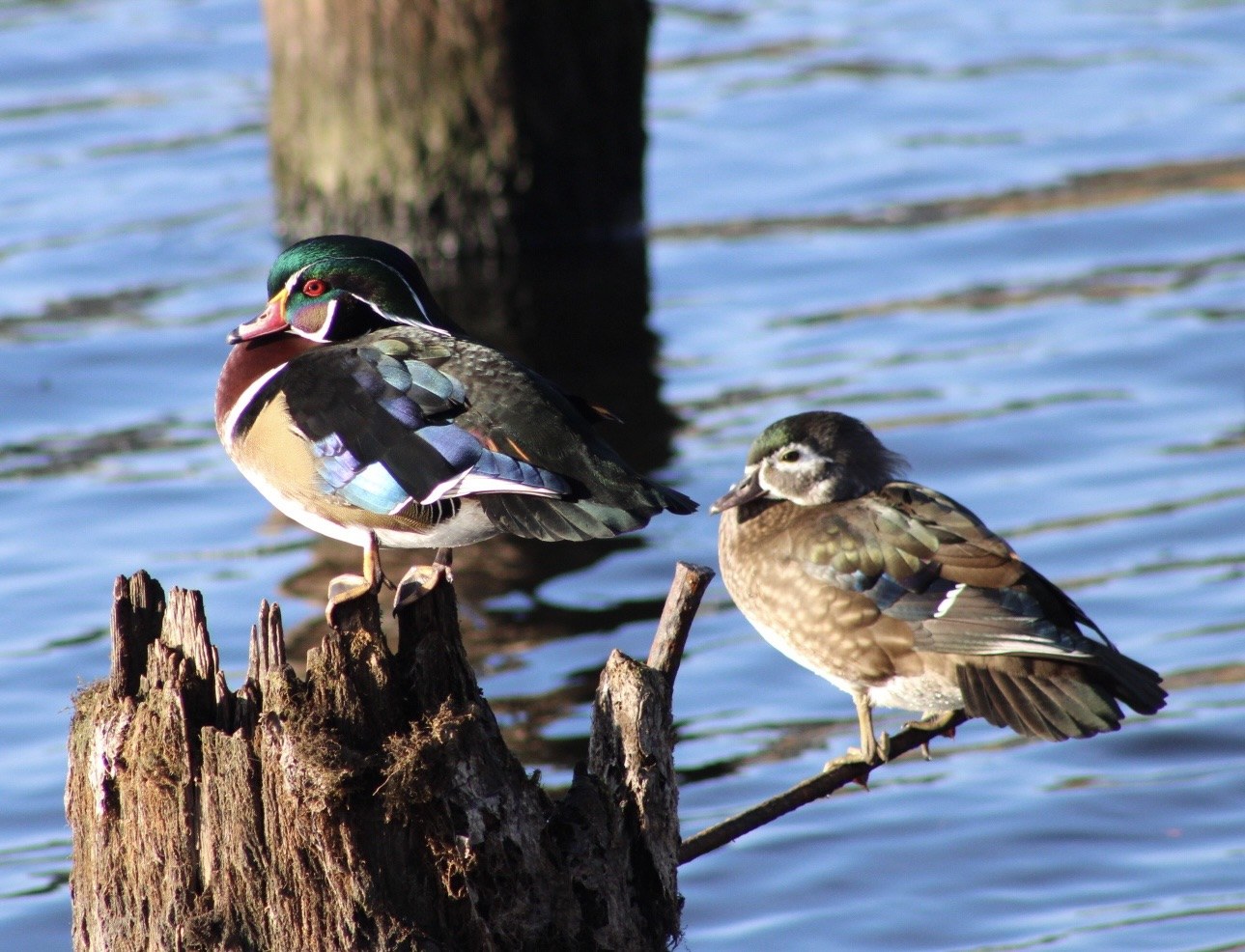 Good collection of ducks today. A pair of bald eagles, a handful of swans and one single turtle head breaking through the surface of the lake.