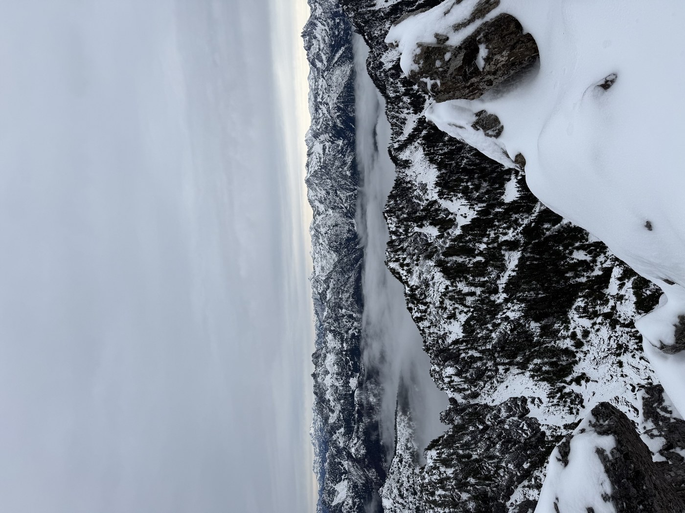 Due to the nature of our group, we elected to take the summer route. Snow was constant, maybe 6 inches as we reached the traverse. I would say microspikes were necessary at least. We had to post-hole on our way up. Ice really began to pick up at the ridge. On the shimmy around the rock beneath the summit, ice buildup was significant and extreme caution should be taken. It is definitely a no-fall-zone. The summit was rather smooth sailing. The cloud cover was perfect for some amazing views, allowing us to see Mt. Olympus, Constance Bowl and Mt. Constance, Mt. Pershing, and a beautiful view of Rainier. And, obviously, Mt. Washington.