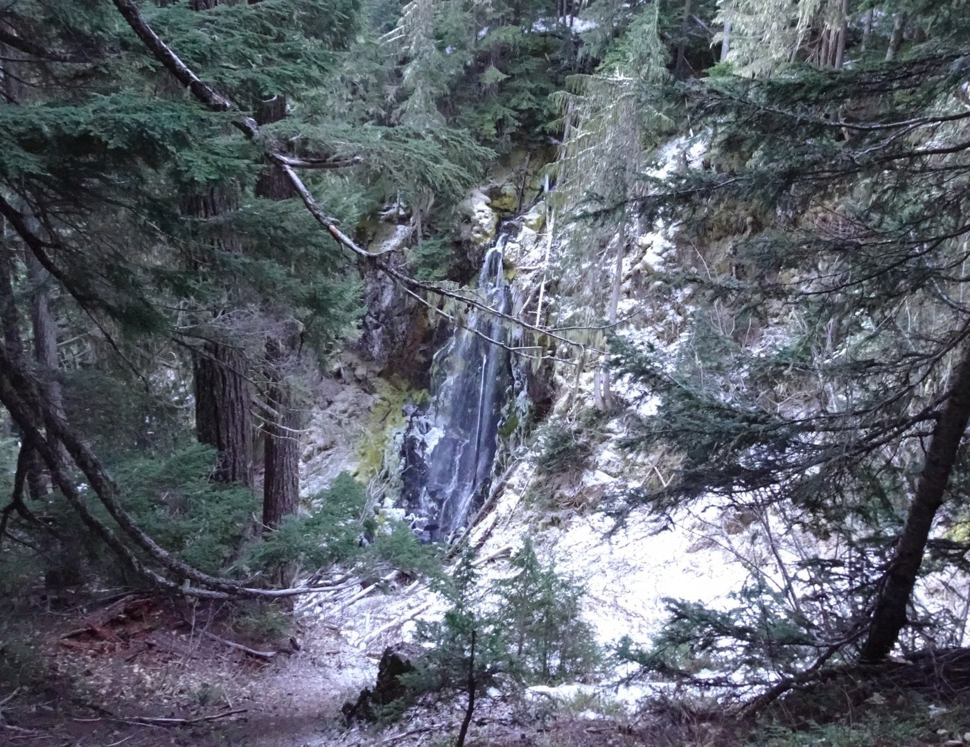 I stopped where my GAIA map says the trail ends. I could see a footbridge just ahead of me (see other post from Nov 28). The trail is above the falls, so instead of looking up to see them you actually look a little downward. Right now, the deciduous trees do not have trees blocking the view.