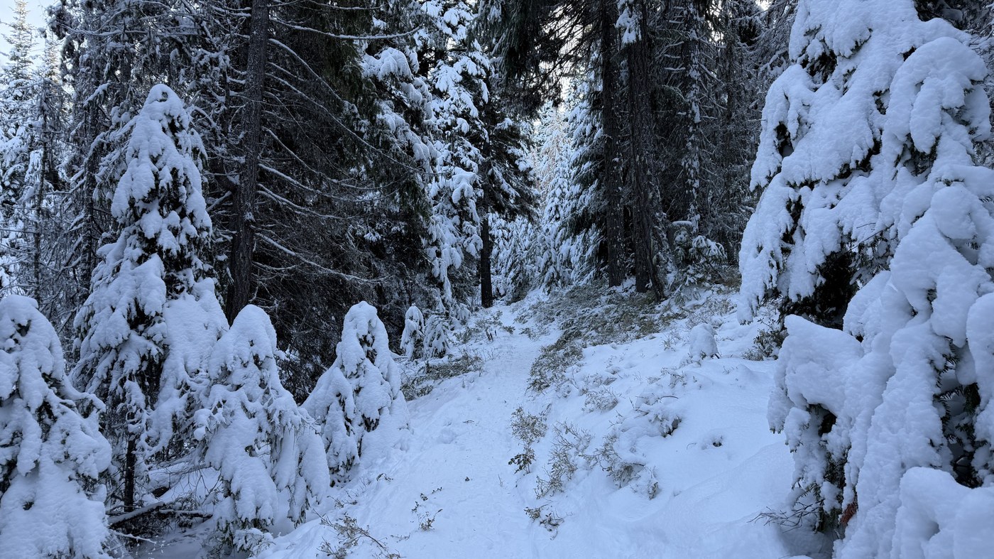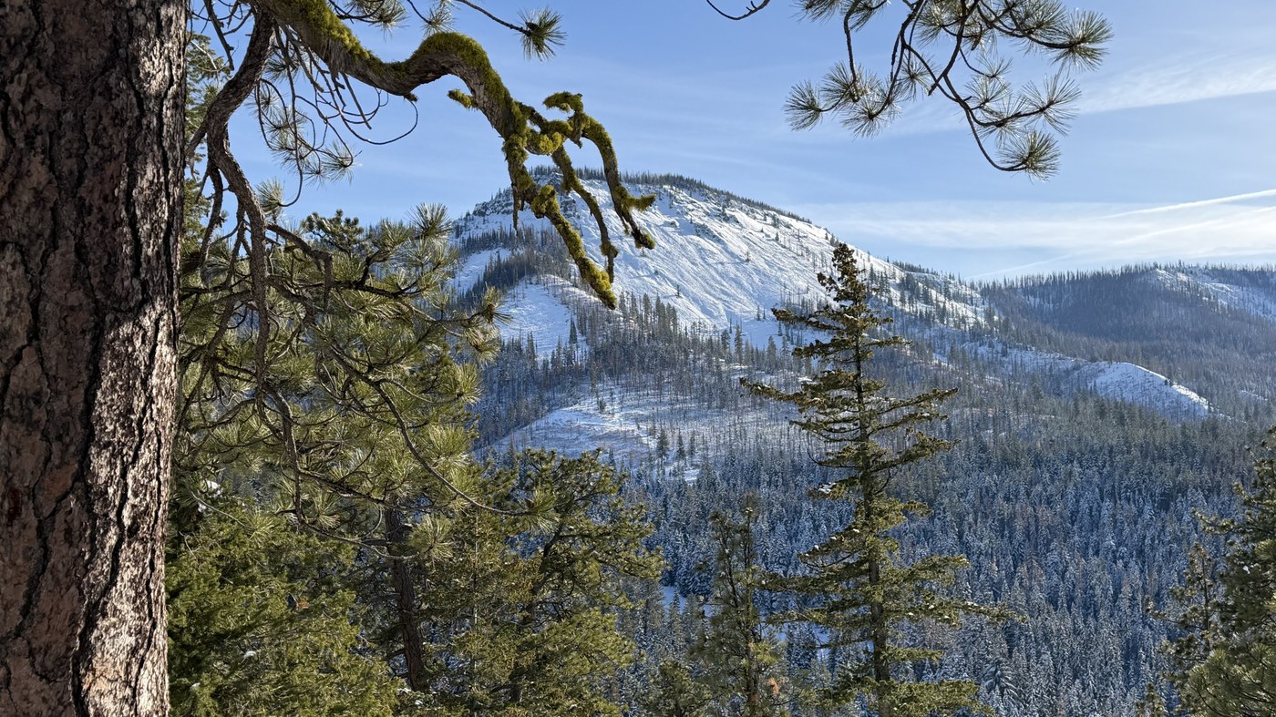 It was a beautiful sunny day over Blewett Pass. Parking lot is snow covered and groomed as the road up to trailhead. Some snowmobilers and sledding people and children in the first 15mins of the walk, and then noone on the actual trail. Trail is covered with a few inches of fresh powder, I had spikes but did not need them, not deep enough for snowshoes either. Nice view from the bench, lots of snow on the trees in the forest