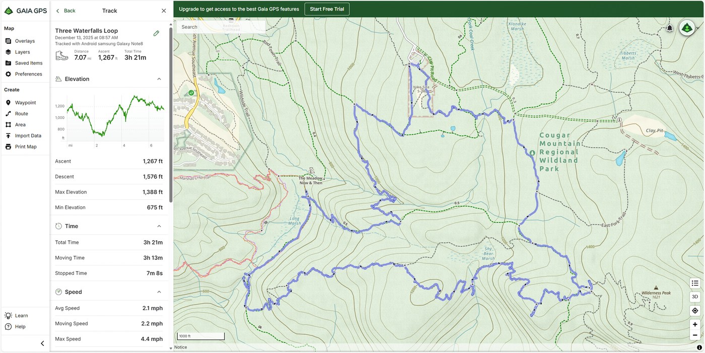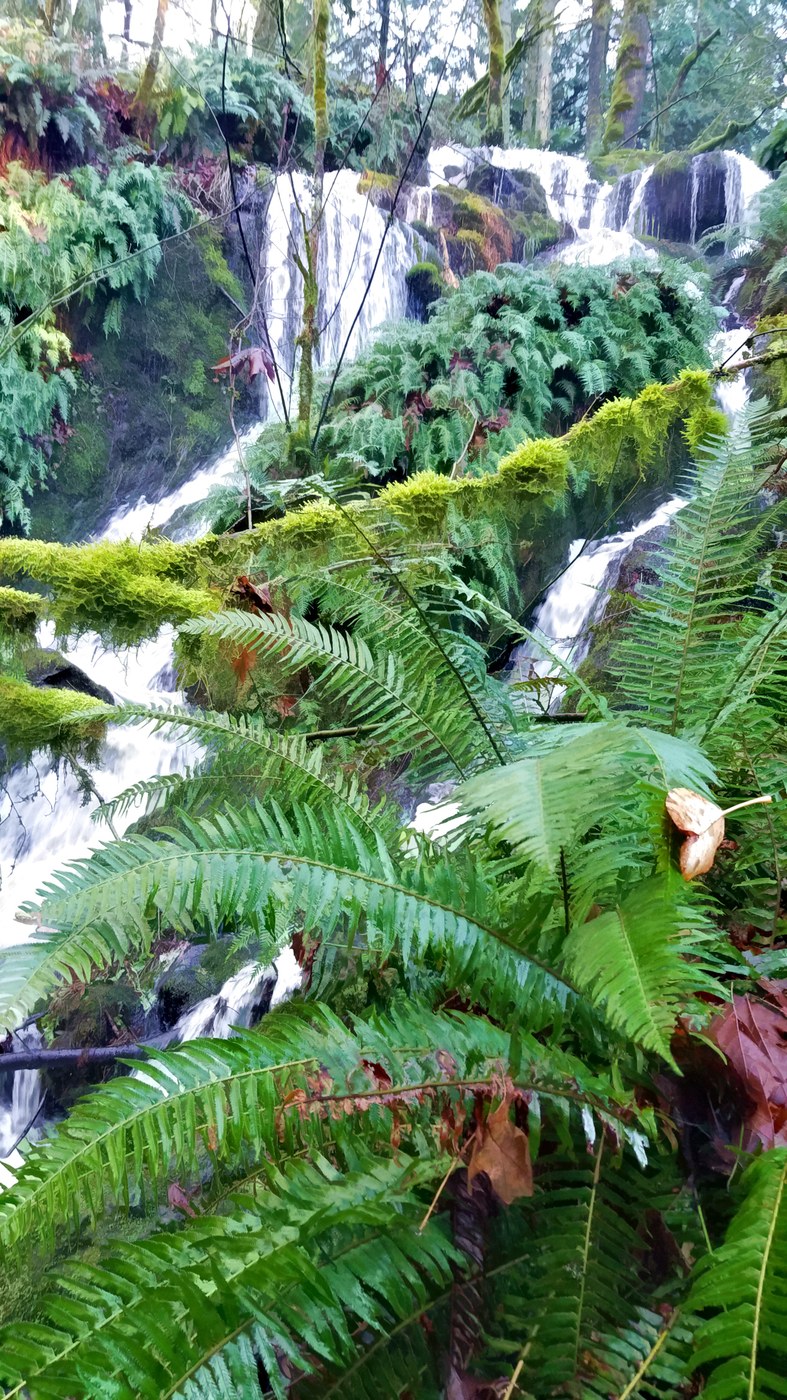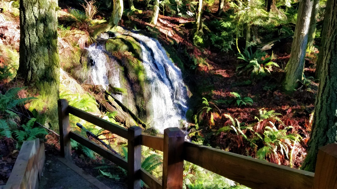 Yesterday, we took advantage of a break in the atmospheric river to hike to three waterfalls in Cougar Mountain Regional Wildland Park. We started at the spacious Sky Country Trailhead parking lot at 8:45 am. (see the WTA Sky Country listing to use the Google map for directions.) The lot was filling up fast, as it was a rare opportunity to witness significant water flow at these smaller waterfalls: Coal Creek Falls, Far Country Falls, and Doughty Falls.
