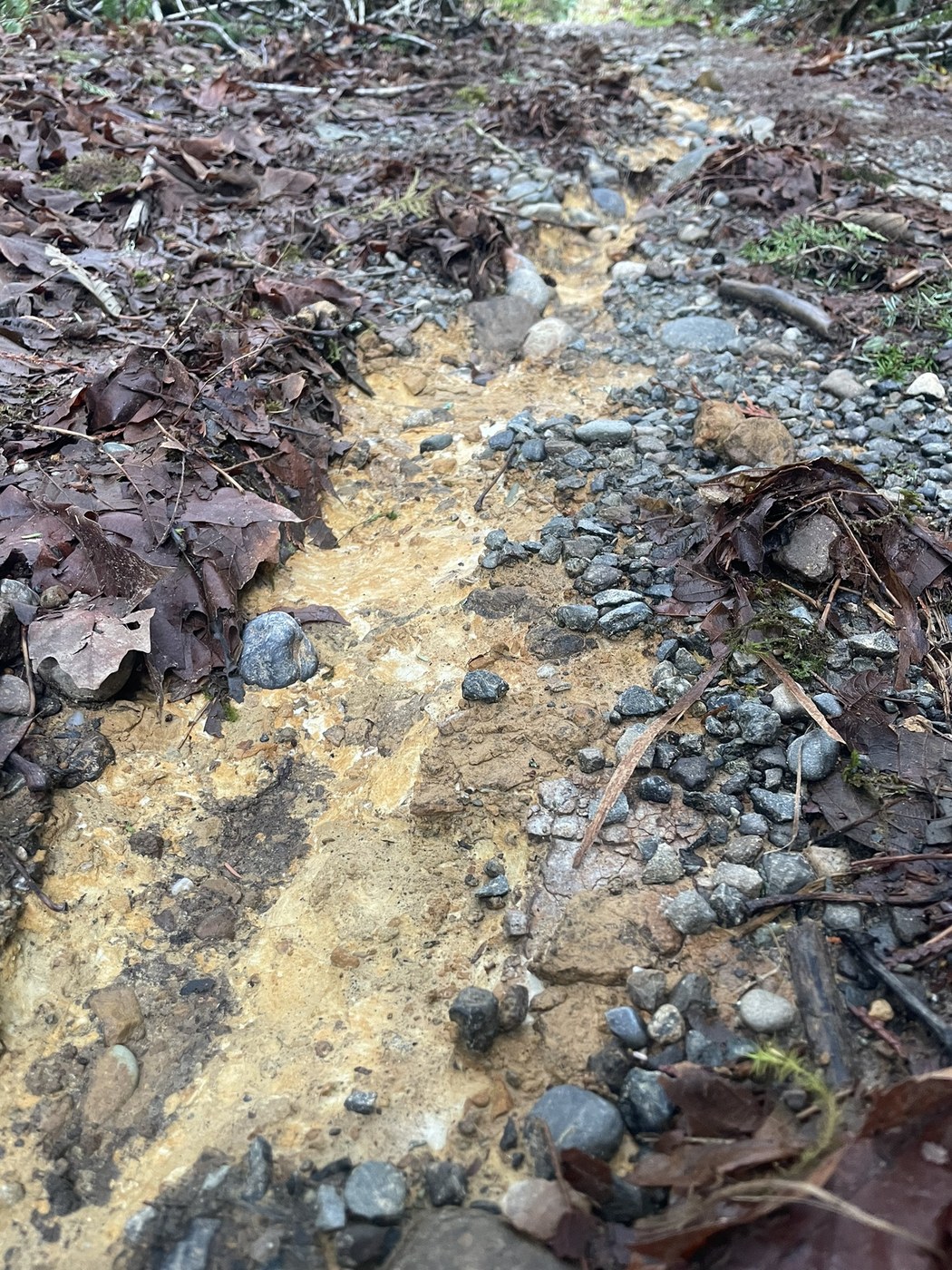 The trail had running water on it and showed minor signs of erosion, including some beautiful exposed yellow clay. I was glad to have poles on the way down. It wasn’t necessary to bust out the microspikes.
