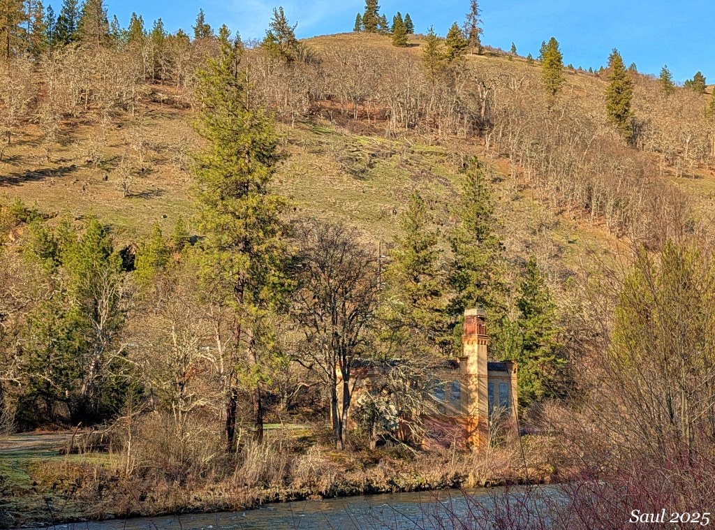 We hiked quickly to stay warm until we rounded the bend into sunshine at the historic Klickitat Mineral Springs. We explored the three mineral springs visible along the trail and looked for views across the Klickitat River to the former mineral water bottling and dry ice plant.