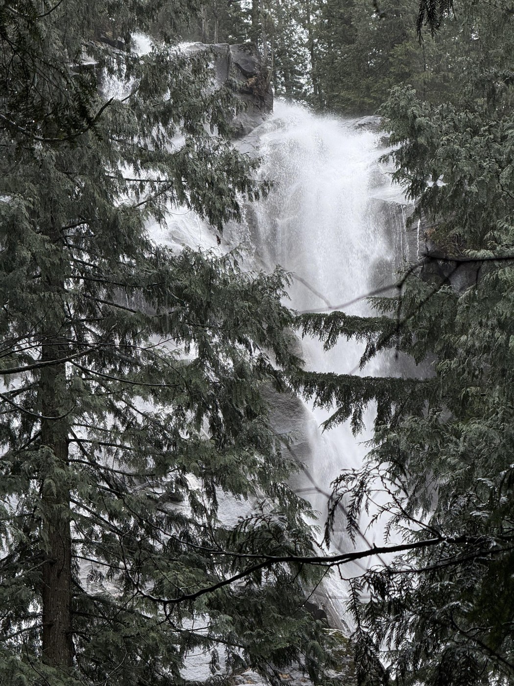 From recent New Year trip reports, I was expecting an unfrozen lake. Surprise, Lake Serene was ice today. Not a surprise, this hike was SO wet. Last time I was here was in 2024, and boy does the trail need a lot of TLC due to recent landslides and fallen trees. Expect areas of mud, unavoidable puddles and water crossings, broken trail sections, trees to climb over or crawl under, and constant whacking in the head by vegetation due to trail overgrowth or pressure from snow.