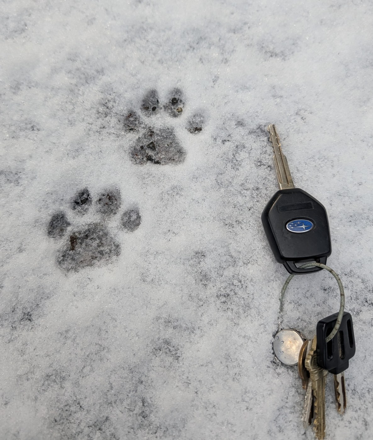 The snow made it easy to spot wildlife tracks. We saw bobcat tracks most of the way. The trail was in good shape. At the big washout, we took the low route along the river and had no problem. We encountered only 2 logs on the trail, both easy to step over.
