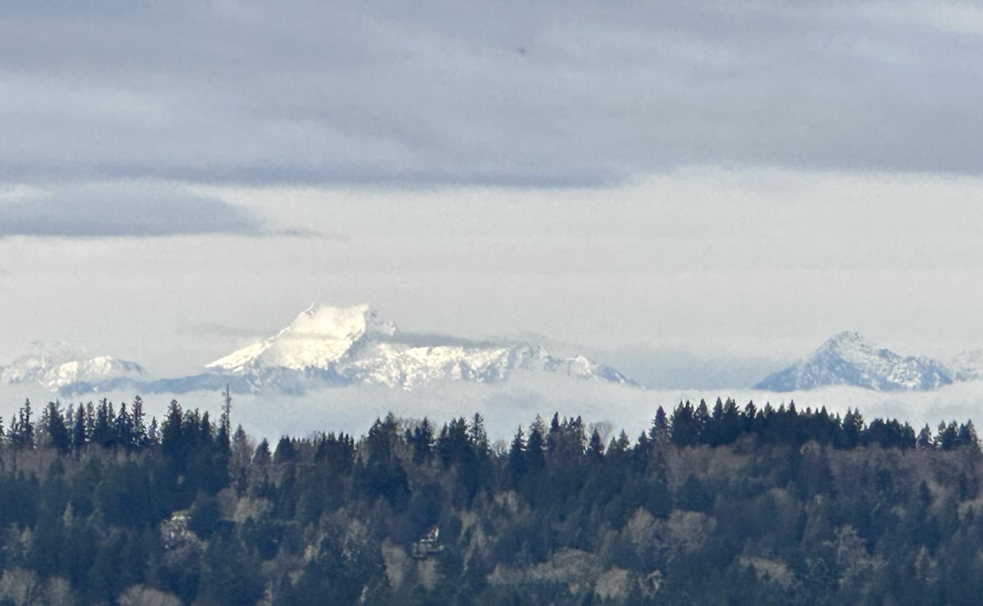 We arrived at the North Parking Lot at 8:30 and there were only a couple other cars there. We meandered along the Beaver Lake Pond trail to Hidden Pond, Wayne's World, Midway, Golden Eye and up to the Rock Candy viewpoint. We were lucky as we relaxed at the viewpoint and the skies cleared up enough for views of Olympic mountains to the west, Cascade mountains to the east and, eventually Mt Rainier. This a great local trail system - just remember to bring a map.