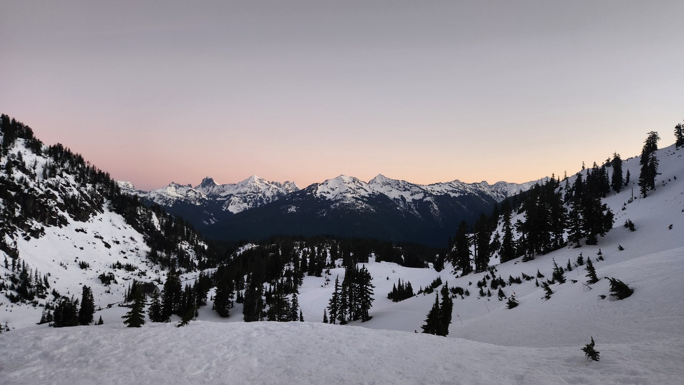 We woke up early to start our hike for sunrise. A phenomenal sunrise, pinks, blues, oranges galore. We stuck around at the summit for awhile because the wind wasn't bad. We watched the sun pop over Shuksan.