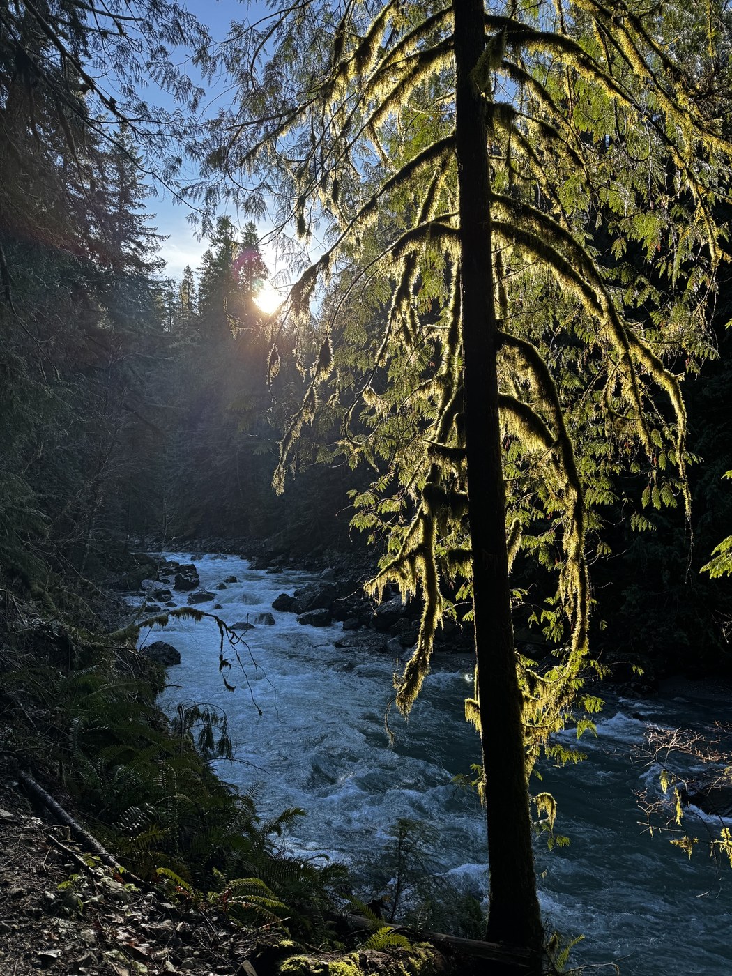 Trail was in good condition given the last storm and flooding. There were maybe two spots where we had to go over a fallen tree or around.