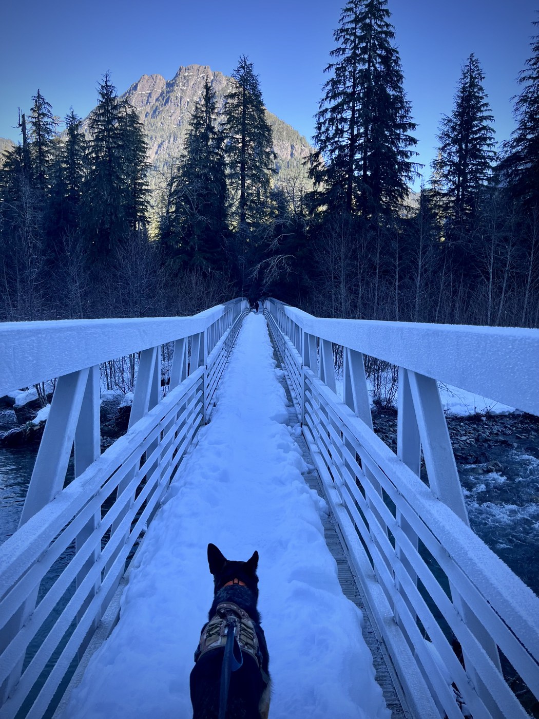A few blowdowns to navigate past. There are no dangerous parts where I’d say microspikes are required but it certainly makes it easier, so I’d say bring ‘em, wear ‘em if you want. If you don’t have any, they are a great investment to do more winter hiking with elevation gain without worrying about slipping, and in some cases completely necessary. Oh and the main bridge is open. Have fun out there!