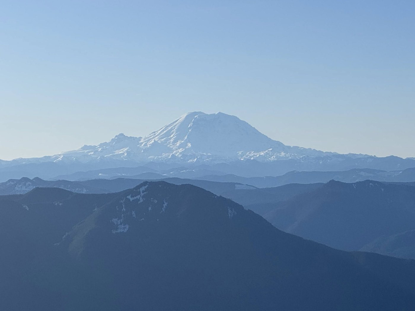 I took the longer, more gentle Mount Teneriffe Trail down. It starts out snow-free along the ridge, but soon patches of that same, solid snow/ice appear. It is SLICK. Don't underestimate it. I didn't put my spikes back on, because I just get annoyed walking on bare trail with them. But my poles really saved me, especially the couple times I slipped. Once I reached the junction with the connector over to Si, the snow patches finally vanished, and it was smooth sailing back over to Talus and the crazy parking lot. Beautiful day!