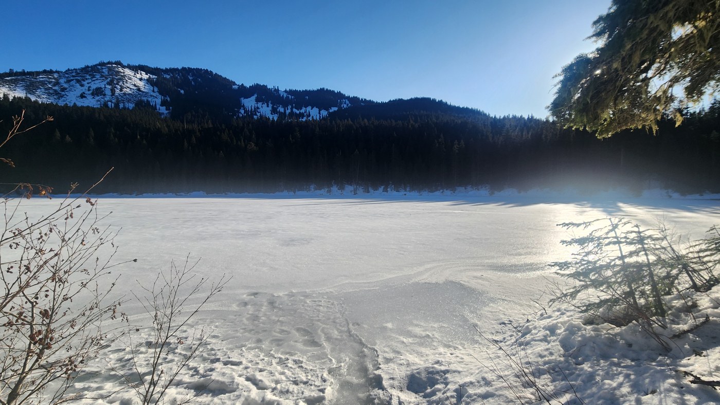 We made it to Olallie Lake, which was frozen over. You could hear the water shifting under the ice sheet, it made really interesting sounds. We only saw 1 other hiker the entire way to the lake and then had the lake to ourselves, it was amazing!