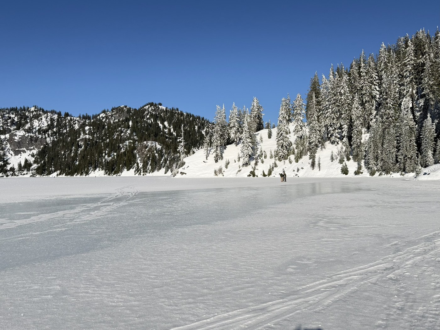 With low snow pack and low avalanche risk forecast we headed for snow lake. Hard icy snow from the beginning. We used micro spikes the entire time. The most challenging part was after source lake turn off, with steep slope, decent exposure and narrow footpaths on icy snow. When we came down around noon, surface layer of snow became soft and slippery. There were a bunch of young people (about 20?) trying to climb up this section in just sneakers, no gear at all. They were slipping around, which was dangerous to themselves and other hikers. Under current condition, decent micro spikes and poles are minimum gears needed. Also check avalanche forecast and be safe!