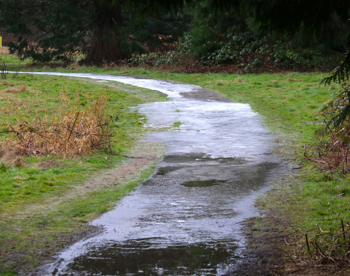 Quick walk around the Blyth park/Wayne golf course trails this morning. We parked at Blyth, free and relatively plentiful. The full restrooms are open and in good condition. Trails remain a mix of wide gravel, smaller single track and switchbacks up the steeper hillside. Quite a bit of ice currently on some trails and those areas that were not frozen have some mud. When the rain comes later this week everything will be pretty sloppy. Additionally, it looks like some locals use the properties as an off leash puppy potty so watch where you step. Lastly, there is signage at both locations indicating ongoing and coming work that may result in partial closures. One bit of good news, much of the trails that run up the hillside from Blyth have recently had quite a bit of work done - clearing, updated drains, filling prior erosion spots, etc. Kudos to the folks working that section, looks super nice.