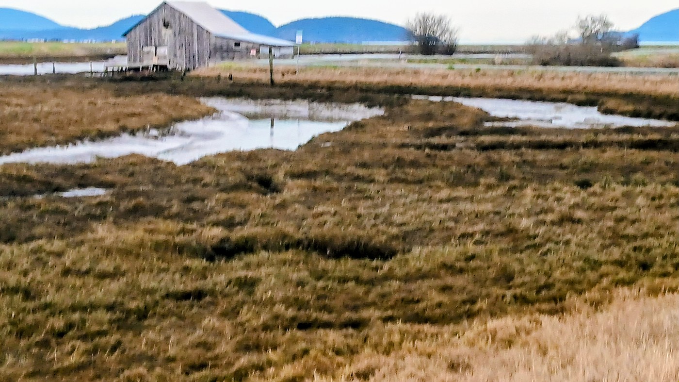[About five miles north, at the Samish River Wildlife Area, a Short-eared Owl was performing. There were also thousands of Snow Geese, several pairs of Bald Eagles, and countless smaller birds.]