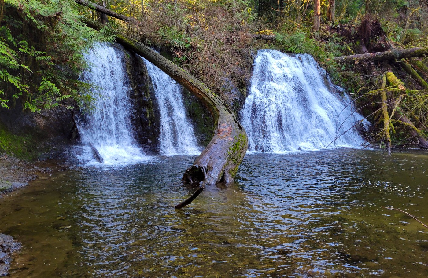 The falls are very attractive and the pond below the falls is perfect for the dog to swim. There's a small remnant of old growth forest around the falls.