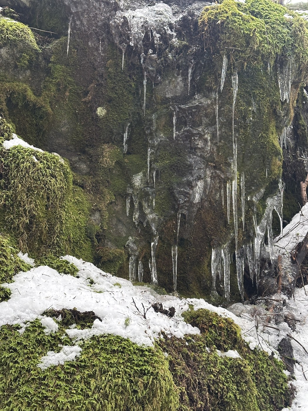 Took a very leisurely stroll to enjoy the icicles, snowy mountaintops and a brief clear view at the balcony. 3h total.
