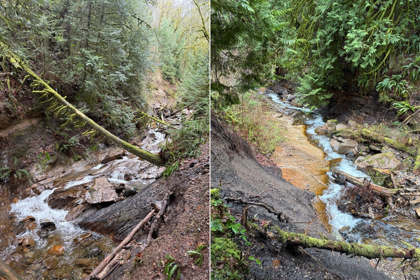 As for the second issue, I absolutely thought it was cool to see a sealed mine as part of the hike. I’d actually not seen one like this before with what I think is called a bat gate. And I didn’t realize how much coal mining history this particular location had until after I’d visited. It turned out to be much more than just seeing a creek running through the Grand Canyon of Tiger Mountain. However, I learned afterwards that the orange colored drainage coming from the mine is not a wonderful thing to see. I learned there’s a reason why all these coal mines tend to be near a creek (Fifteenmile, Coal Creek, etc.) and that the drainage is potentially not an environmentally friendly thing to see. And very concerning considering how many of us hike here with our dogs that may drink nearby water. Or people who go down into the water.
