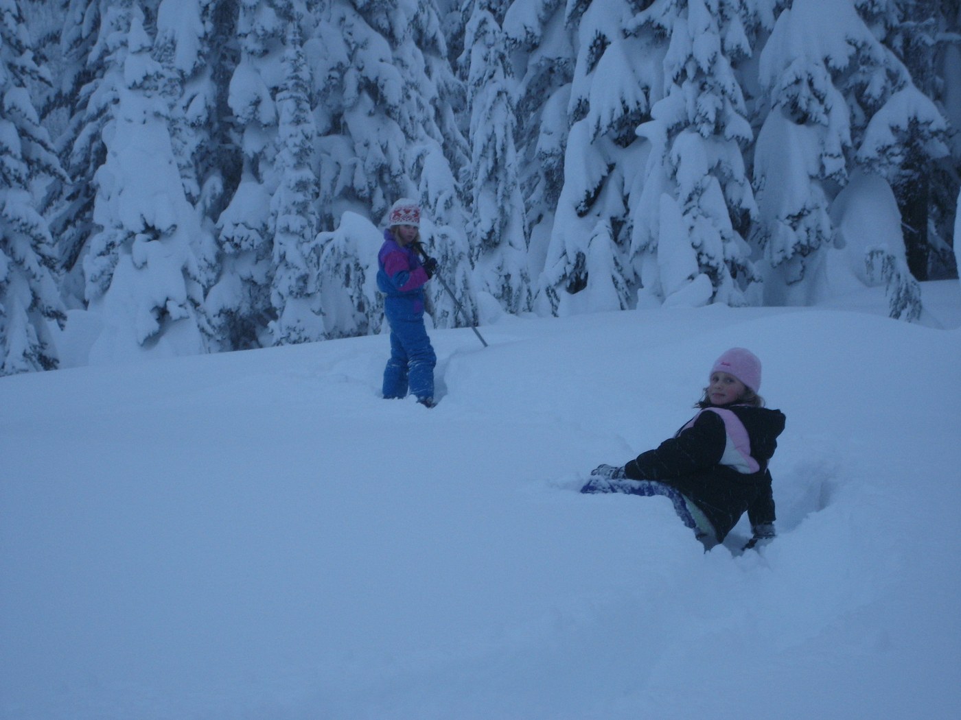 My wife, kids, and I headed up to Paradise for some sledding, and a little snowshoeing. The mountains had just gotten so much snow that the sledding runs were pretty rough when we got there - so we opted for a snowshoe walk instead. We headed up past the bathrooms towards Edith Creek Basin - though we didn't really go that far. We found a spot in the hillside overlooking Paradise Valley, dug out a sofa in the snow for ourselves, and sat back and watched all sorts of skiers and snowshoers far below. The cocoa and snacks were great! We turned around in time to watch a great, pink sunset as we tromped back to the car. Lots of fun in lots of powder. Walked less than a mile in 90 minutes or so.