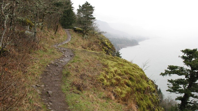 Beyond the waterfall heading east we looked in vain for signs of the Peregrine falcon nesting area. A proposed season closure from the waterfall to the Cape Horn road is intended to protect the falcons during the critical nesting period, but would also prohibit hiking the full loop.