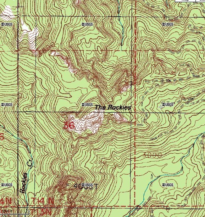 We were coming back from Yakima, and decided to make a quick reconnaissance of the area. We approached The Rockies from Morton. About 3 miles west of the town on SR 508, we turned onto Forest Road 73, unmarked by any sign. The road climbs the valley of the Tilton River (ever heard of that river before?), a impressively steep and rugged place. At another unmarked junction, we then turned onto FS 7307. We passed a number of other spur roads which were all gated and marked no-trespassing; the logging company landowner is pretty hard line about access to their lands.
