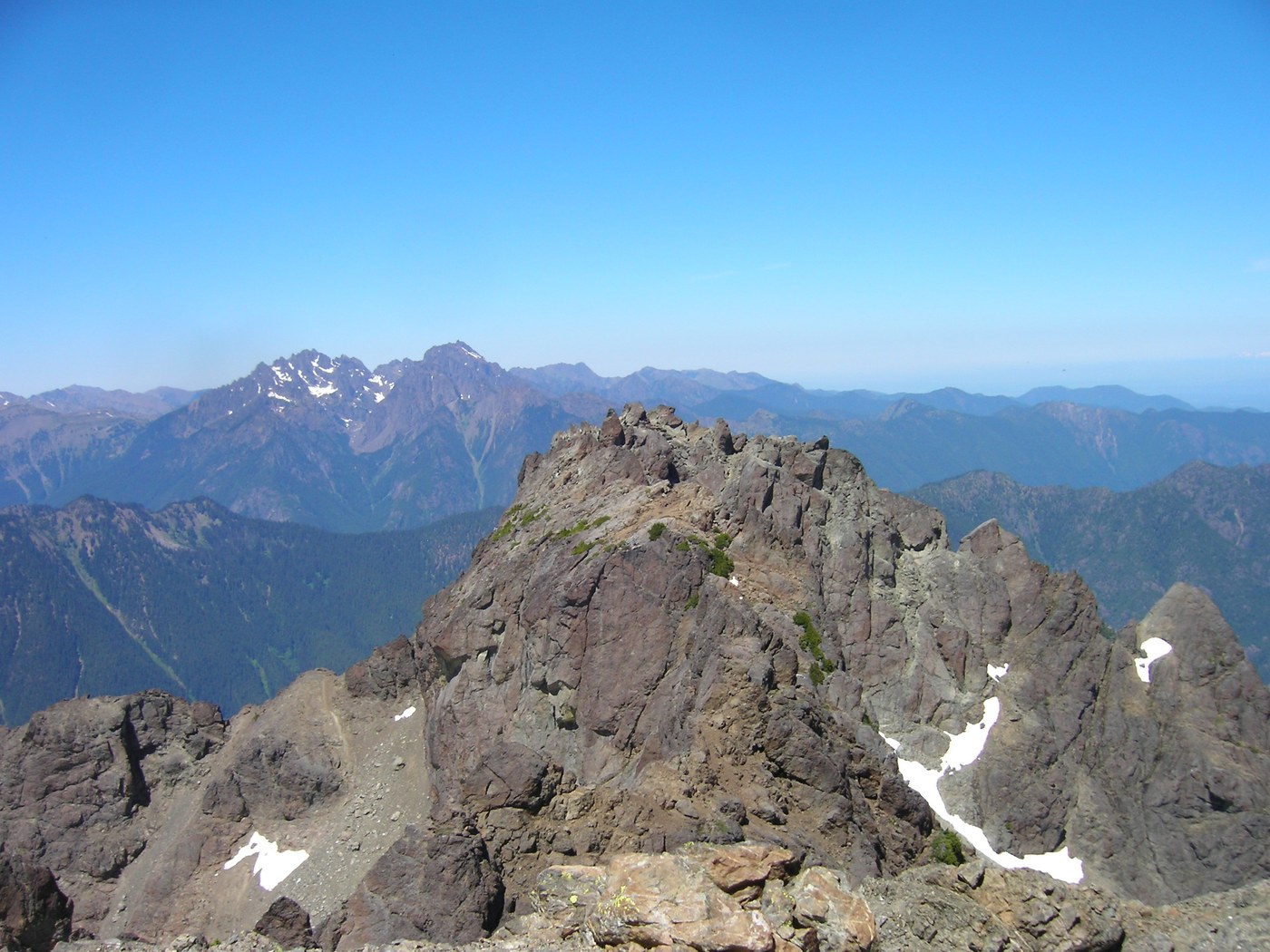 There is basically no snow left on the route to the summit. The trip took 7.5 hours RT from the climbers camp - 4 hours up and 3.5 hours down. There was quite a bit of minor bouldering and steep loose rock along the way which made the going up tedius, and the down-climb even more so. Our party agreed that a rope should have been brought along. Water is still easliy available up to about 1/4 of the way from the top (about 15 min above lunch rock). The wildflowers were abundant (and such a wide array!), the views outstanding, and the fearless goats made for a bit of extra excitement.