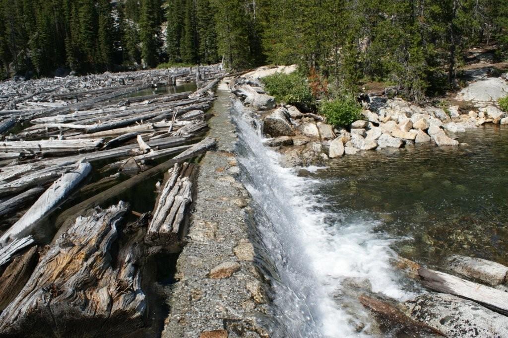 I digress. We then headed towards Lake Viviane. Somewhere along here was the half way mark of our trip. We reached Lake Viviane at 1:11pm, where there were yet more spectacular views. And they were even better as we walked towards the end of the lake. Well I should say ‘climbed’ down. It’s necessary to climb down a granite slab where rebar has been placed in the rock and you must take extra care. One slip could ruin your day on the mountain. Viviane has some great reflections at the end too. This was the last lake in the Lower Enchantments before heading to the Snow Lakes, which can be seen from above. We reached this overlook at around 1:15pm and made our way over rocks and through forest. We got to Upper Snow Lake at 1:16pm or about 1hour and 13 minutes after seeing it from the overlook. It took us about 34 minutes to travel around the right side of the lake and reach the dam that separates Upper Snow Lake from Lower Snow Lake. There was water pouring over the dam and our feet were wet by the time we reached the other side. We took another short break but there was still 6.5 miles to go so we headed off at 3:18pm greatly refreshed from the wee rest and snacks. Down the trail we’re off like the goats we spied above. Nada Lake appeared below us at 3:27pm and we actually arrived at the lake at 3:42pm. This was the last lake of the day. About two miles from the end of our journey, we saw a wall of rock on our left where reportedly rock climbers can be seen but we didn’t see anyone this day. Finally, we crossed the bridge over Icicle Creek at 6:10pm and up a final 50 feet in elevation to the Snow Lakes TH at 6:12pm. That was the longest part of the trip really, the 2 hours and 30 minutes from Nada Lake to here.