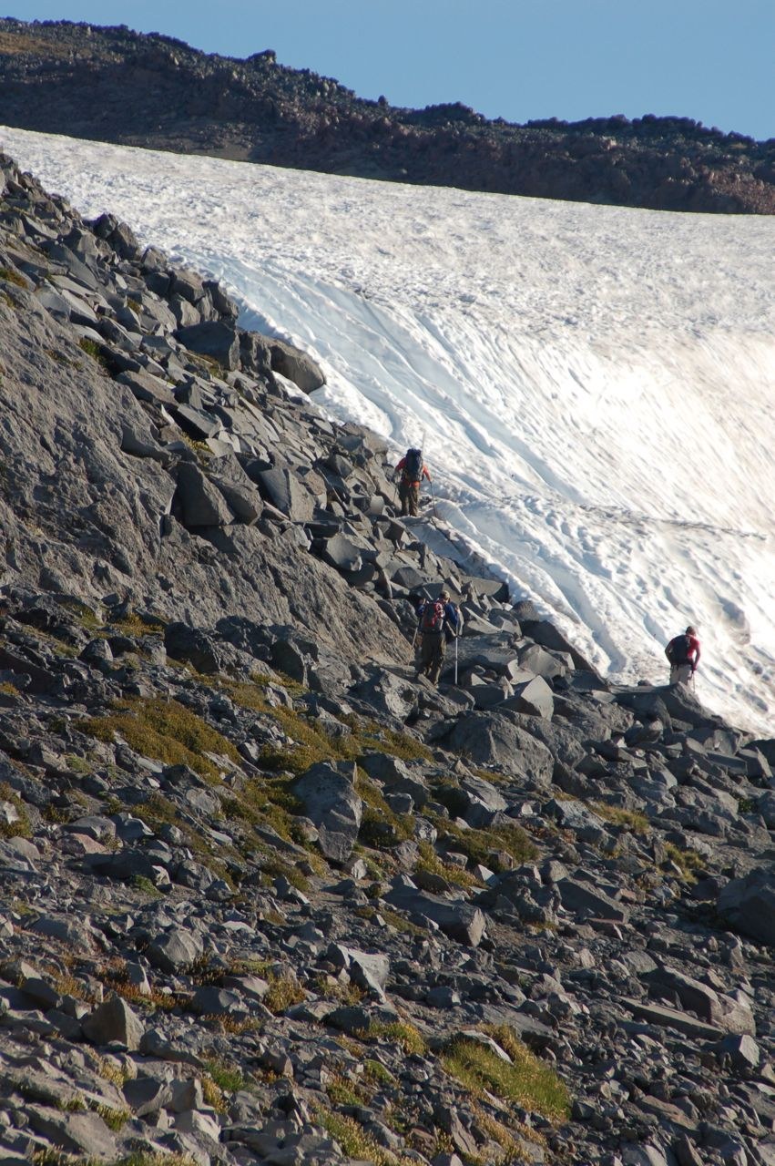 We hit the upper skyline trail at about 7:15a on Sunday - having left the house at 5:15a in an attempt to beat the weekend crowds to Paradise. And we did. On the way up to McClure's rock, we encountered ten people hiking up, and another dozen coming down (all having summitted between midnight and 2p).