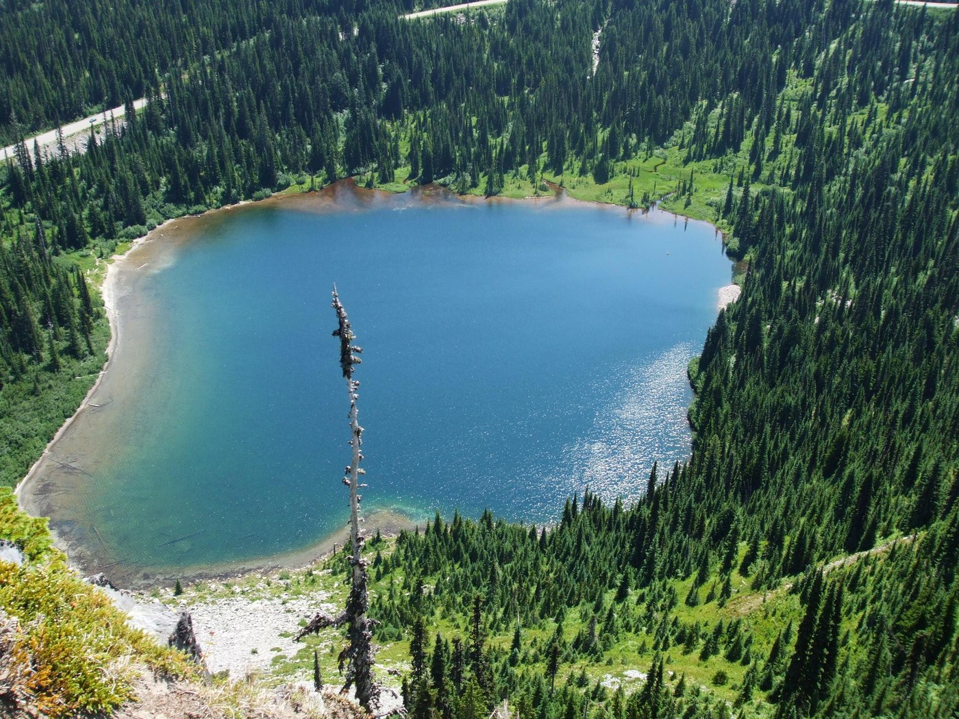 The trail is in good condition with one log bridge broken. The snow has melted off the top of Mazama Ridge with the trail clear and the flowers stunning all along the ridge top and meadows. Biting flies come out in the forested areas and near the lakes. Long pants and shirts are helpful.