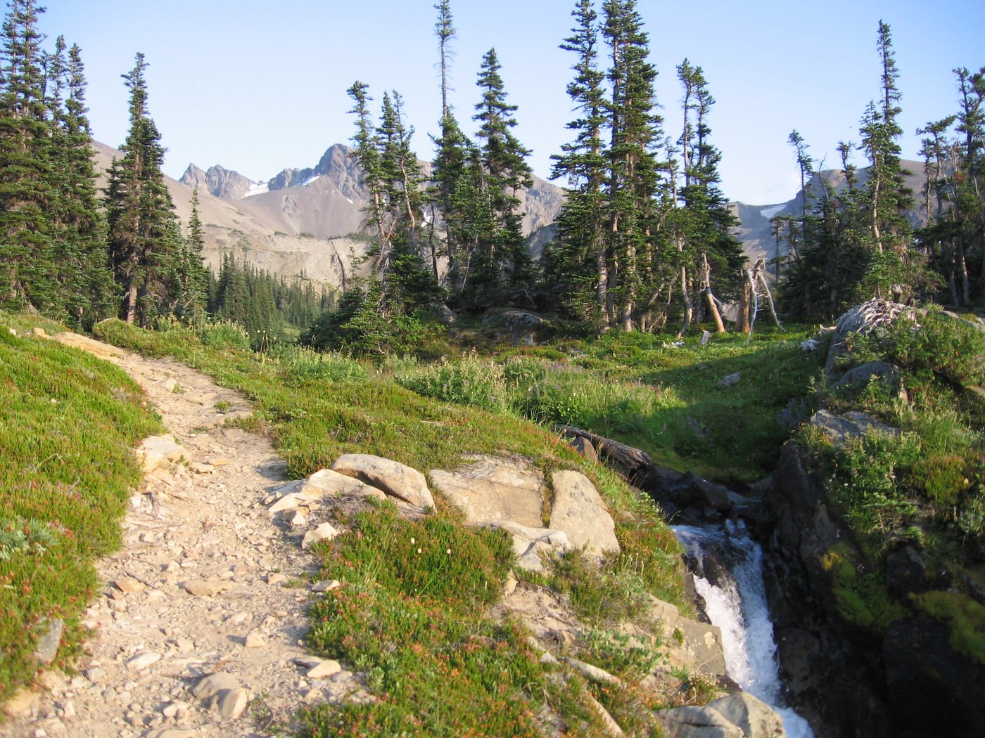 The first day of our 45.5 mile loop took us through the Grand Valley, up Grand Pass, on to the Cameron Creek Trail, and in to Cameron Basin where we camped near the waterfall in the North end of the Upper Cameron. We found the trail to this point to be in fine shape. The first few switchbacks down from Grand Pass certainly are steep and covered in loose rock, and the entire plunge down to the Cameron Creek Trail is pretty jarring. The ever changing viewes more than made up for this. Our Upper Cameron camp was bug free, and next to one of the prettiest streams I've seen.