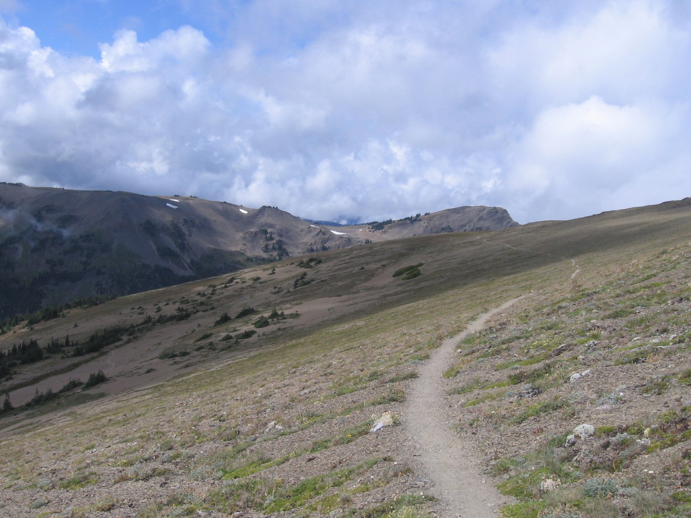 Unfortunately, day four found us mostly in the clouds. The 7.5 miles back to Obstruction point was a very nice alpine meadow hike, but I understand that the views are commanding. The drop off from the trail was fairly intimidating in places, and together with the clouds, I was glad to be hiking with others.