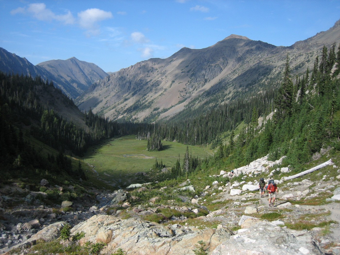 If you can get the permit for the Upper Basin do it. It's well worth the extra mile and 500' of gain. It's incredibly scenic, and a rare opportunity to ascend to true alpine wilderness on a "regular" trail. When you are in the upper basin, you feel like a true mountaineer, surrounded by mountains and glacial moraine. It's fabulous.